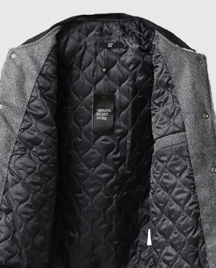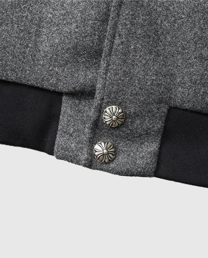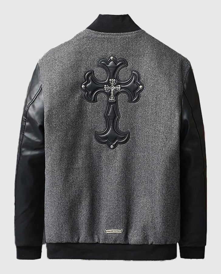 Be the first to review “Men’s Chrome Cross Letterman Bomber Grey Jacket” Cancel reply