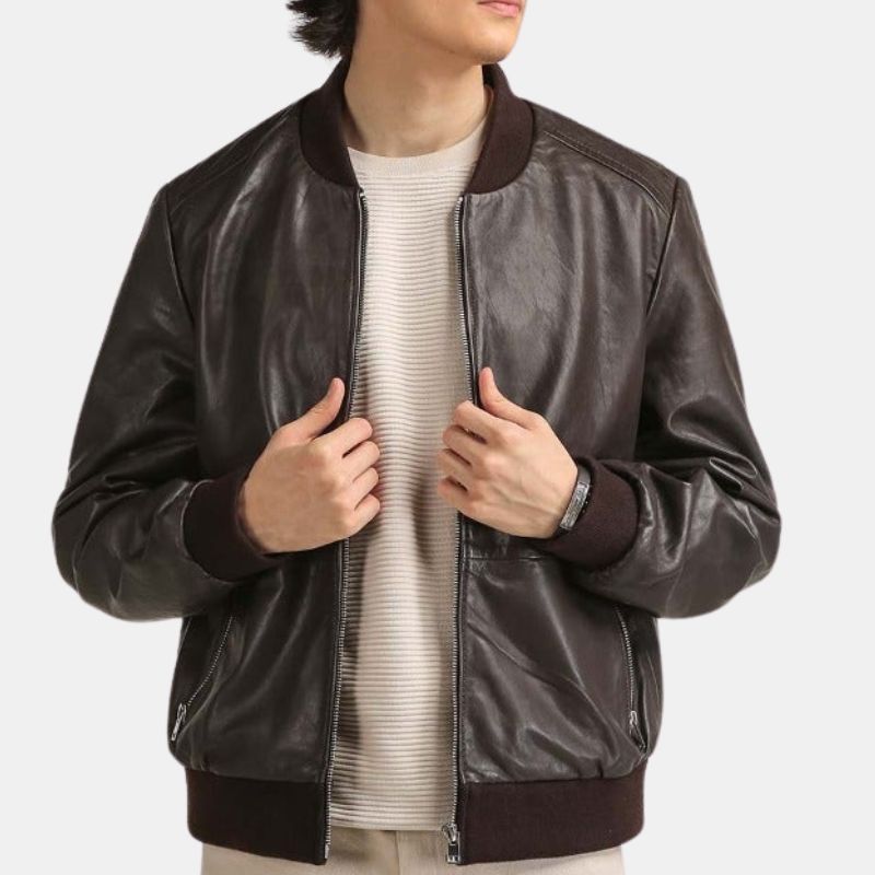 Classic meets contemporary with the Men’s Chocolate Brown Leather Bomber Jacket, a staple for every man’s wardrobe. Crafted from premium genuine leather in a deep, rich chocolate brown, this jacket offers a sleek and timeless look that pairs perfectly with both casual and smart-casual outfits. The bomber style, known for its relaxed fit and comfortable design, gives you an effortless edge without sacrificing comfort. Featuring a sturdy front zip closure, ribbed cuffs, and a ribbed waistband, this jacket hugs you in all the right places while keeping the chill at bay. The soft inner lining ensures warmth and coziness, making it ideal for cool evenings or everyday wear. The classic bomber silhouette is enhanced with functional pockets—two on the outside and one inside—so you can carry your essentials without hassle.