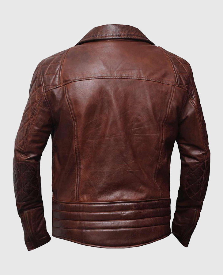 Men’s Classic Diamond Brown Biker Leather Jacket