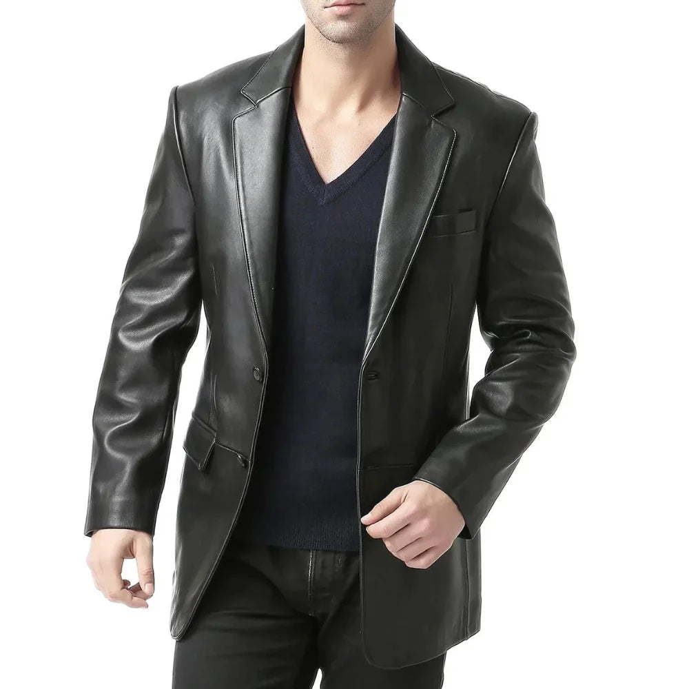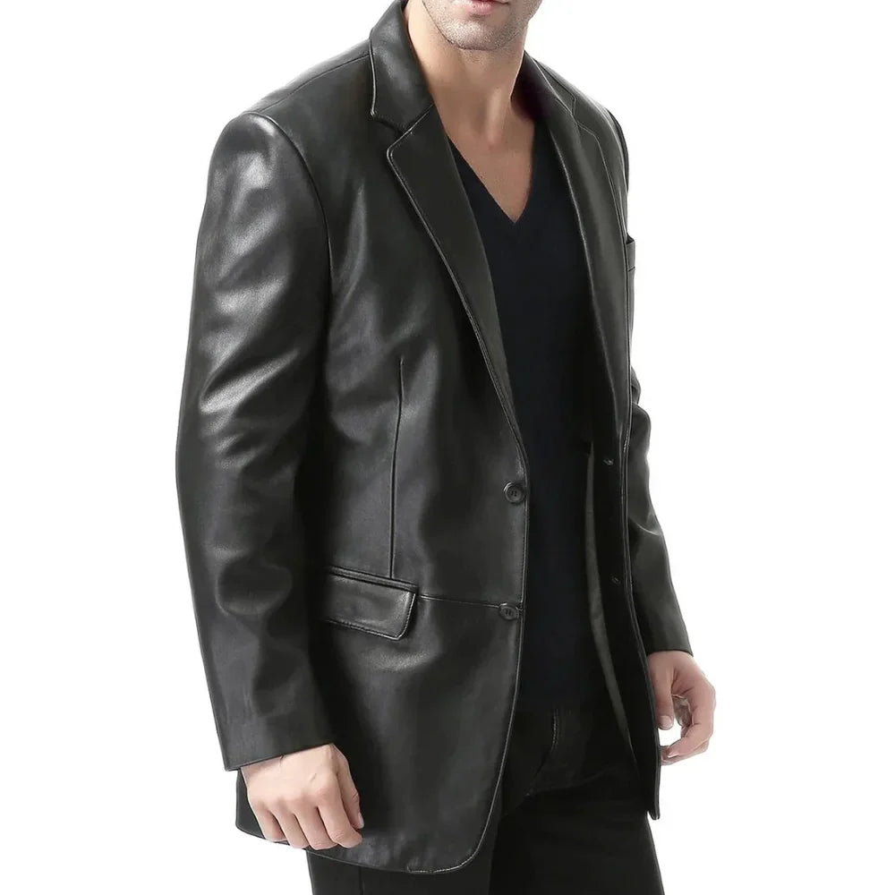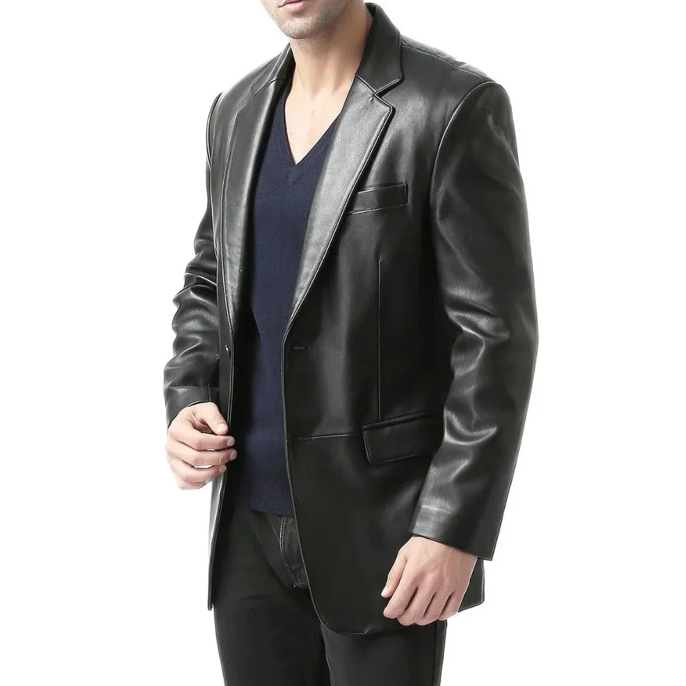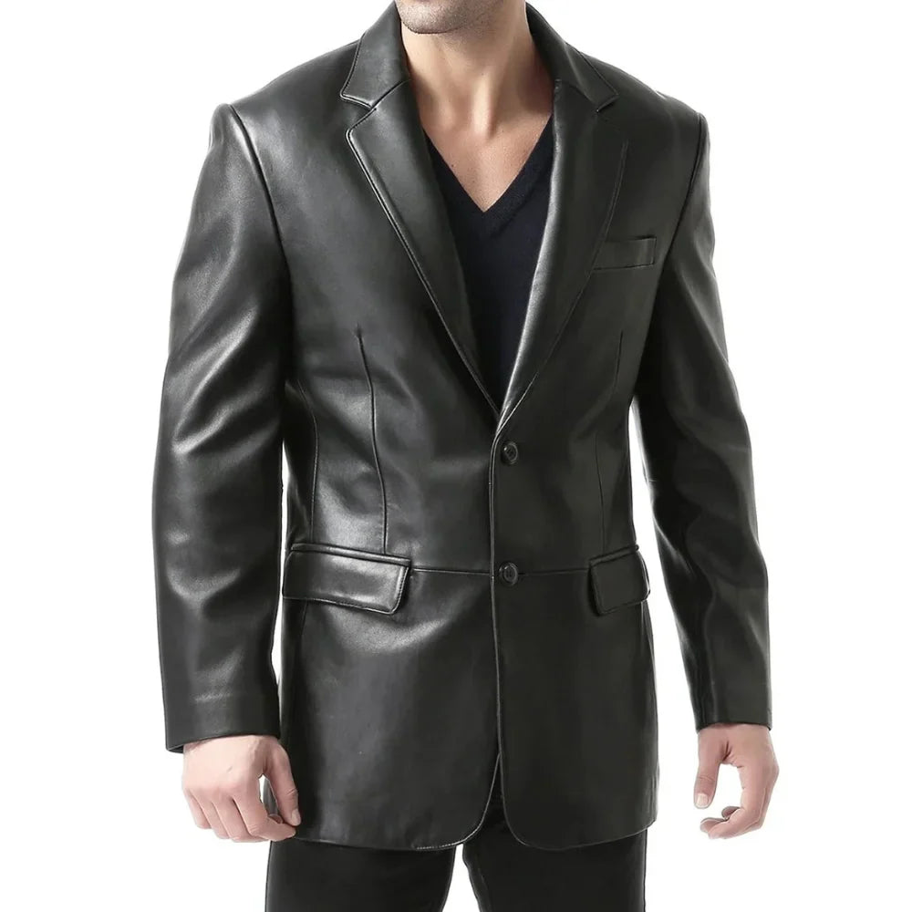 Be the first to review “Mens Classic Two Button Black Leather Blazer Jacket” Cancel reply