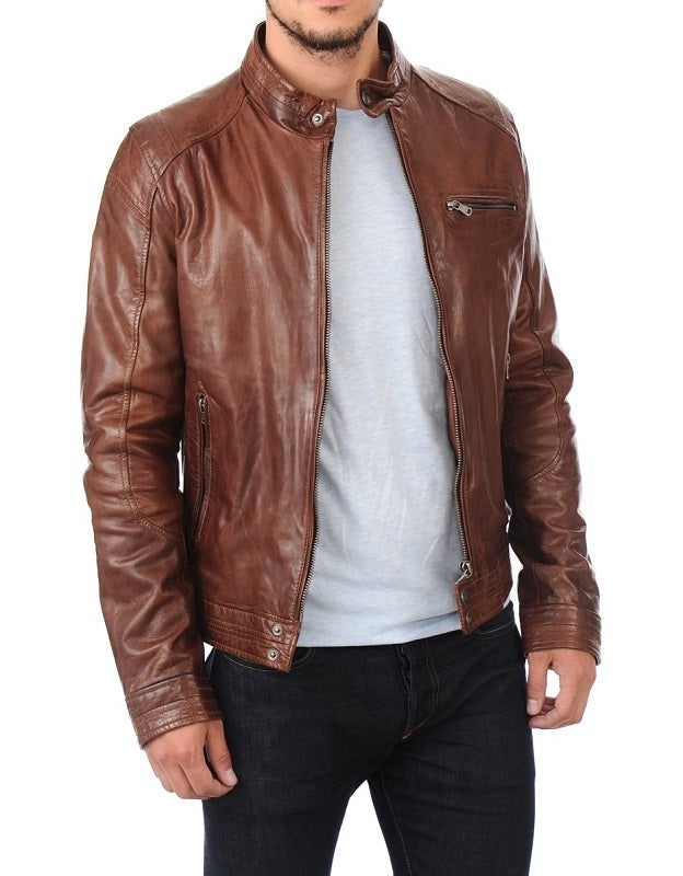 Be the first to review “Enigma Brown Waxed Leather Biker Jacket” Cancel reply