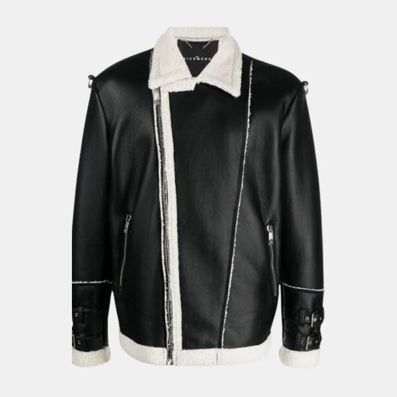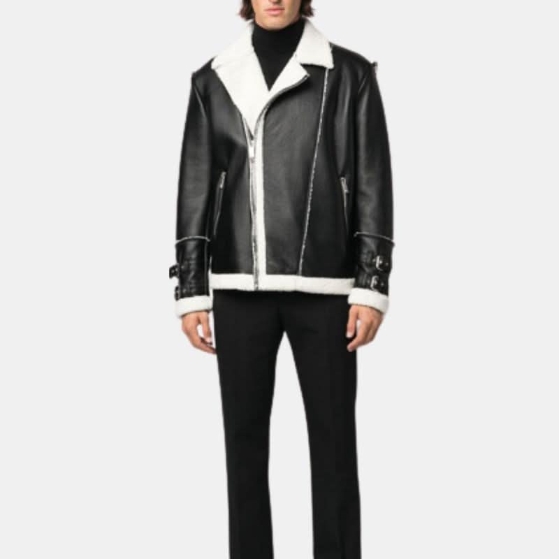 Rev up your wardrobe with our Men’s Faux Shearling Moto Black Jacket. The faux shearling lining adds warmth and attitude, making it your confident go-to choice. Crafted for the modern man, this jacket effortlessly combines style and function. Whether you’re cruising through the city or kicking back with friends, it’s your ultimate expression of cool. Engineered for lasting comfort, it’s not just clothing—it’s your authentic vibe. trendy jackets !