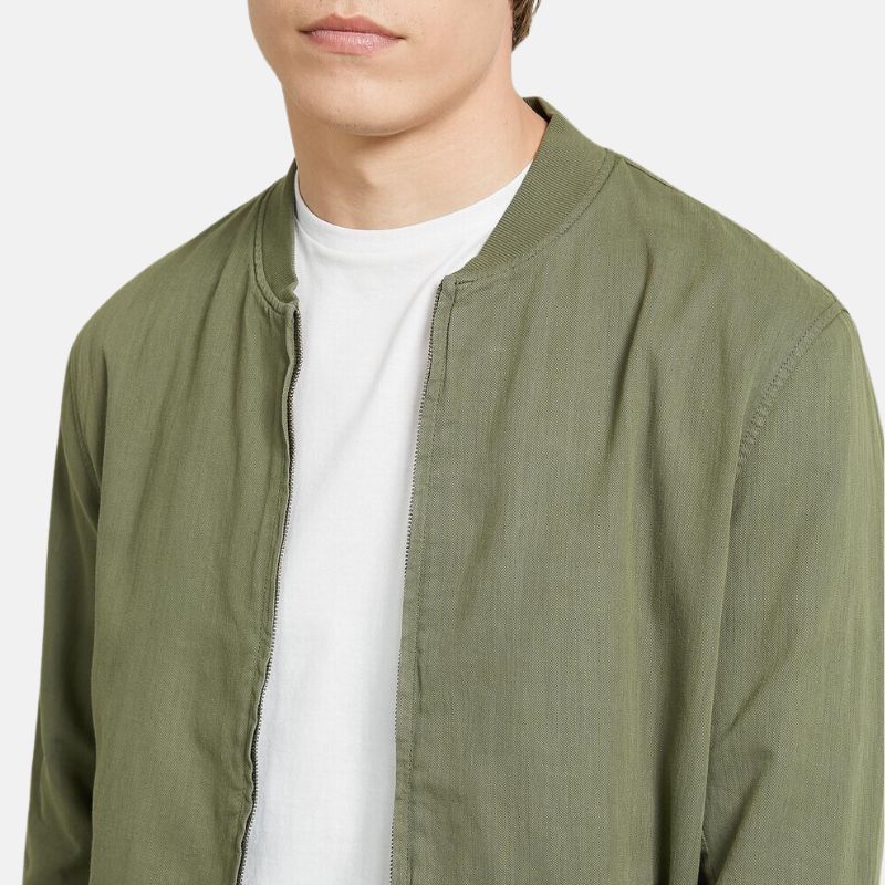 Pale Green Cotton Bomber Jacket For Mens