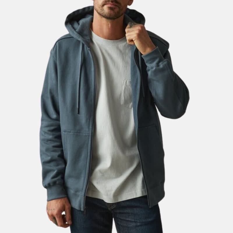 Introducing our cozy pigeon blue hoodie jacket for men! Crafted from premium fleece with a soft inner lining, it’s perfect for casual outings. With a full zipper closure & rib knitted cuffs & hemline, it offers both comfort & style. Pair it with jeans & sneakers for a relaxed weekend look, ideal for running errands or hanging out with friends. Whether you’re heading to a game or simply enjoying a brisk day outdoors, this jacket is your go to for comfort & warmth!