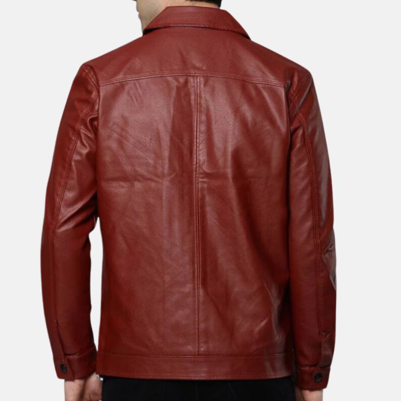 Introducing the Men’s Red Plain Leather Jacket, a bold statement piece that adds a pop of color to your wardrobe. Made from 100% premium leather with a soft viscose inner lining, it offers both style & comfort. With its classic shirt collar & buttoned cuffs, this jacket brings a timeless appeal to any look. Pair it with jeans for a casual yet stylish outfit, or layer it over a neutral sweater for a striking contrast. Whether you’re out for a night on the town or simply want to stand out during the day, this jacket is the perfect choice for adding flair to your ensemble.