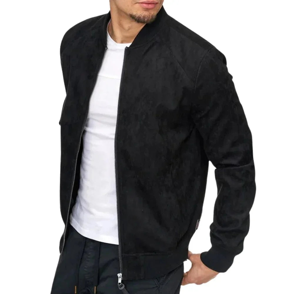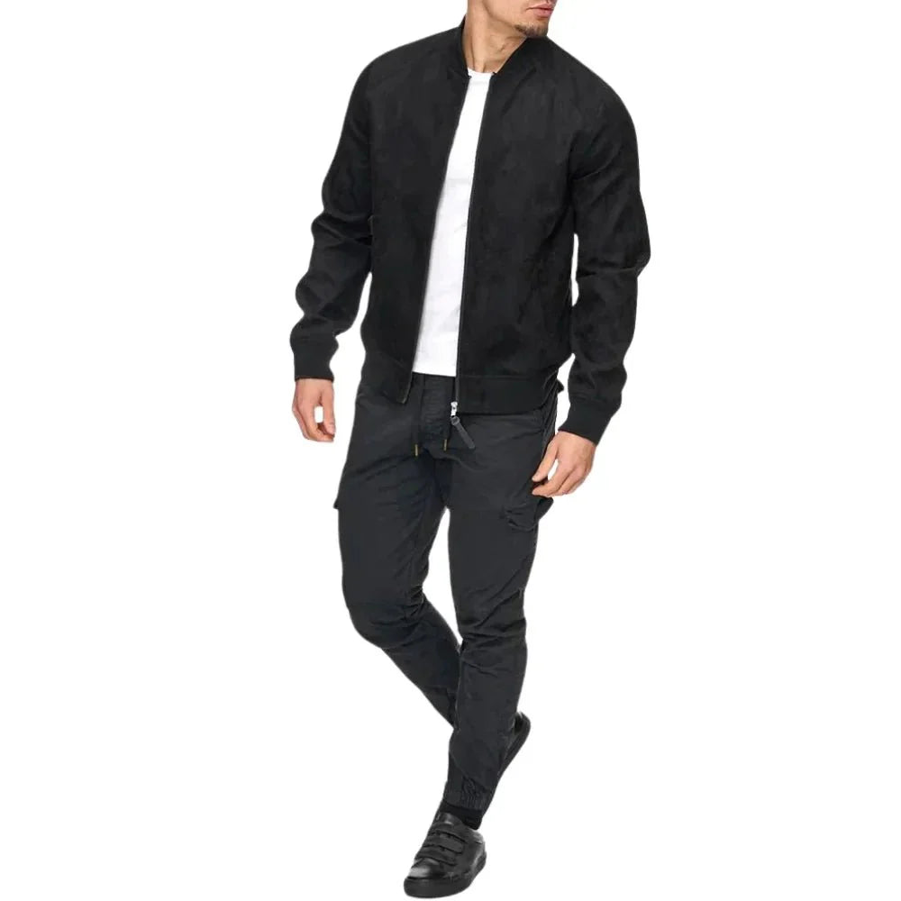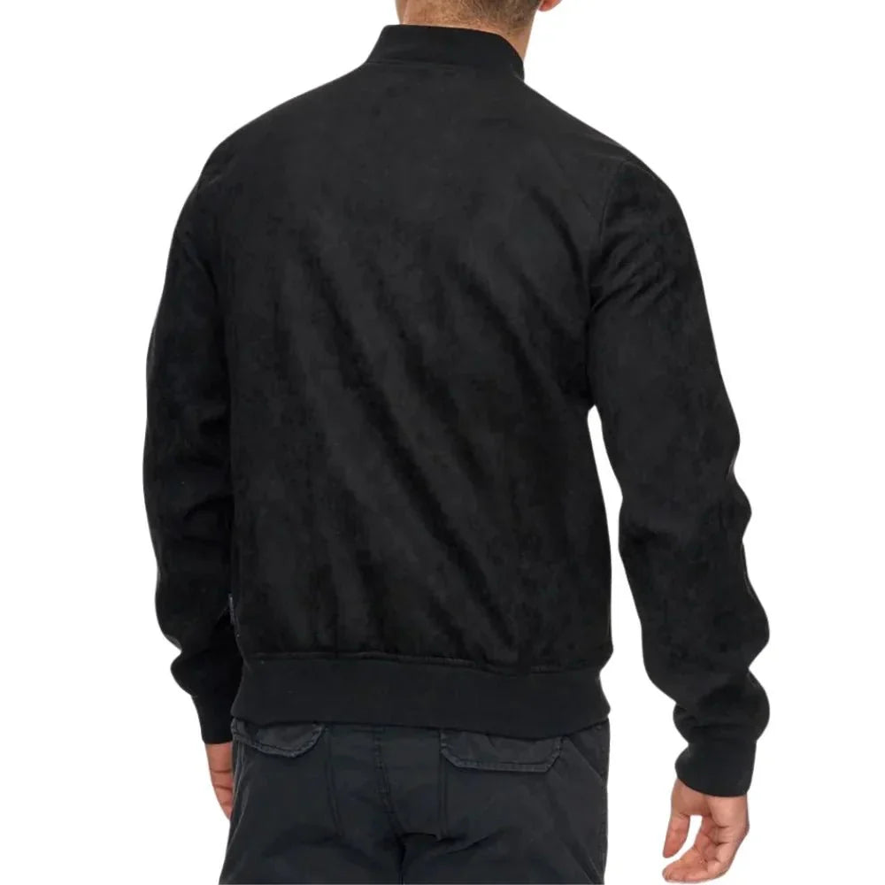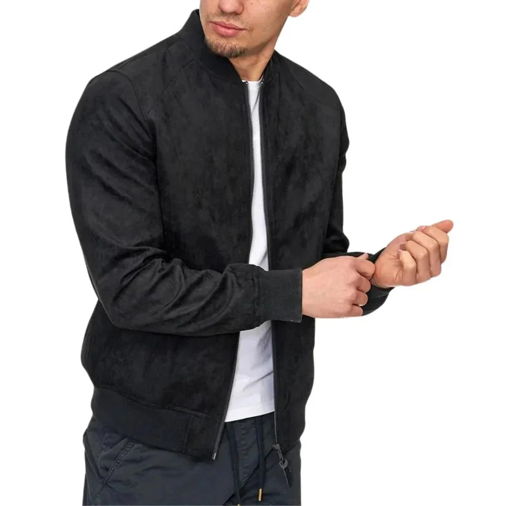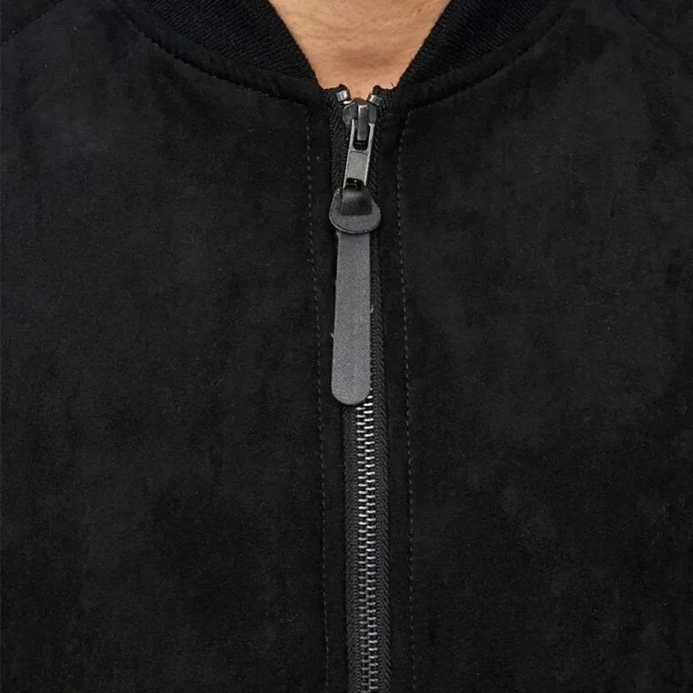 Ribbed Detailing Classic Black Suede Bomber Jacket for Men’s