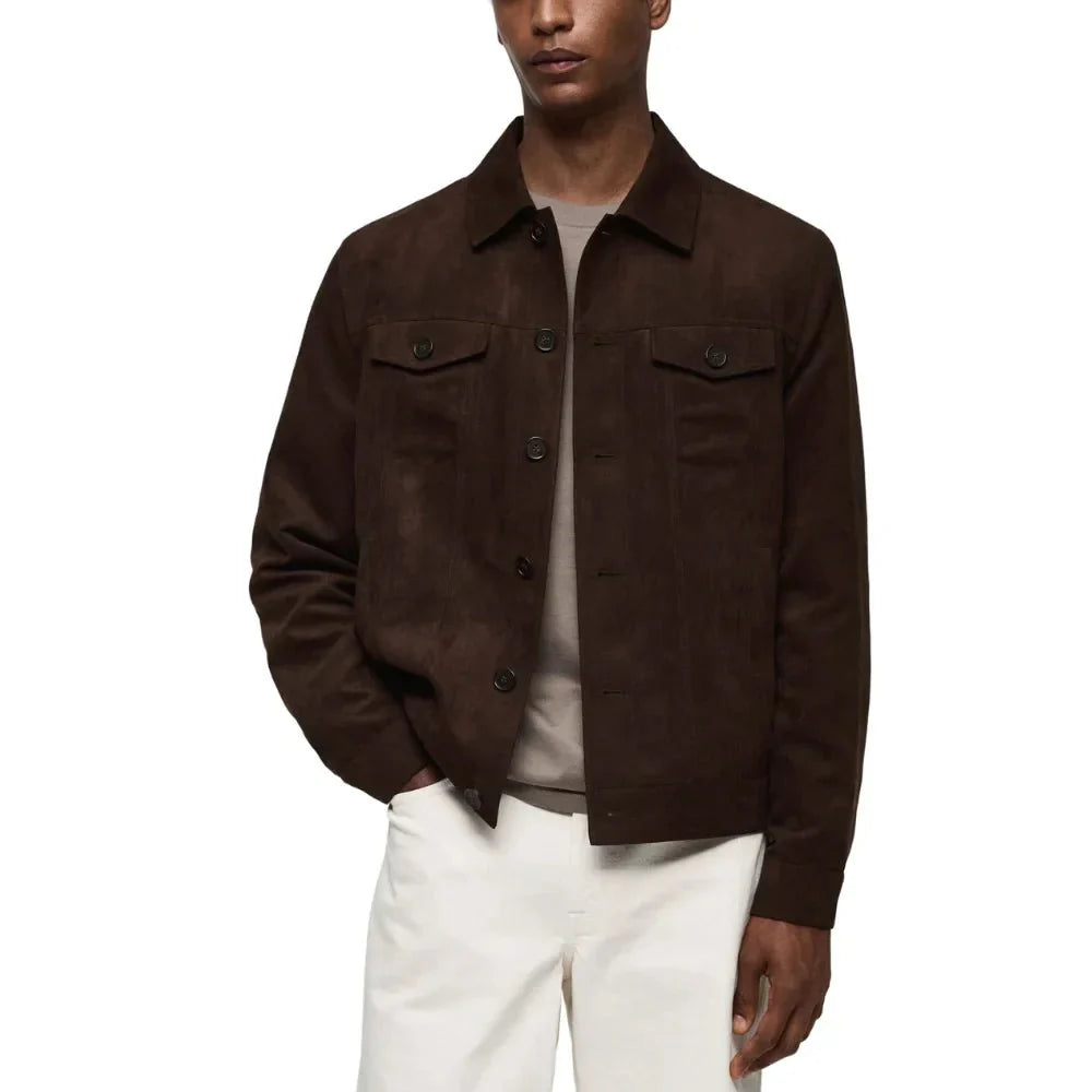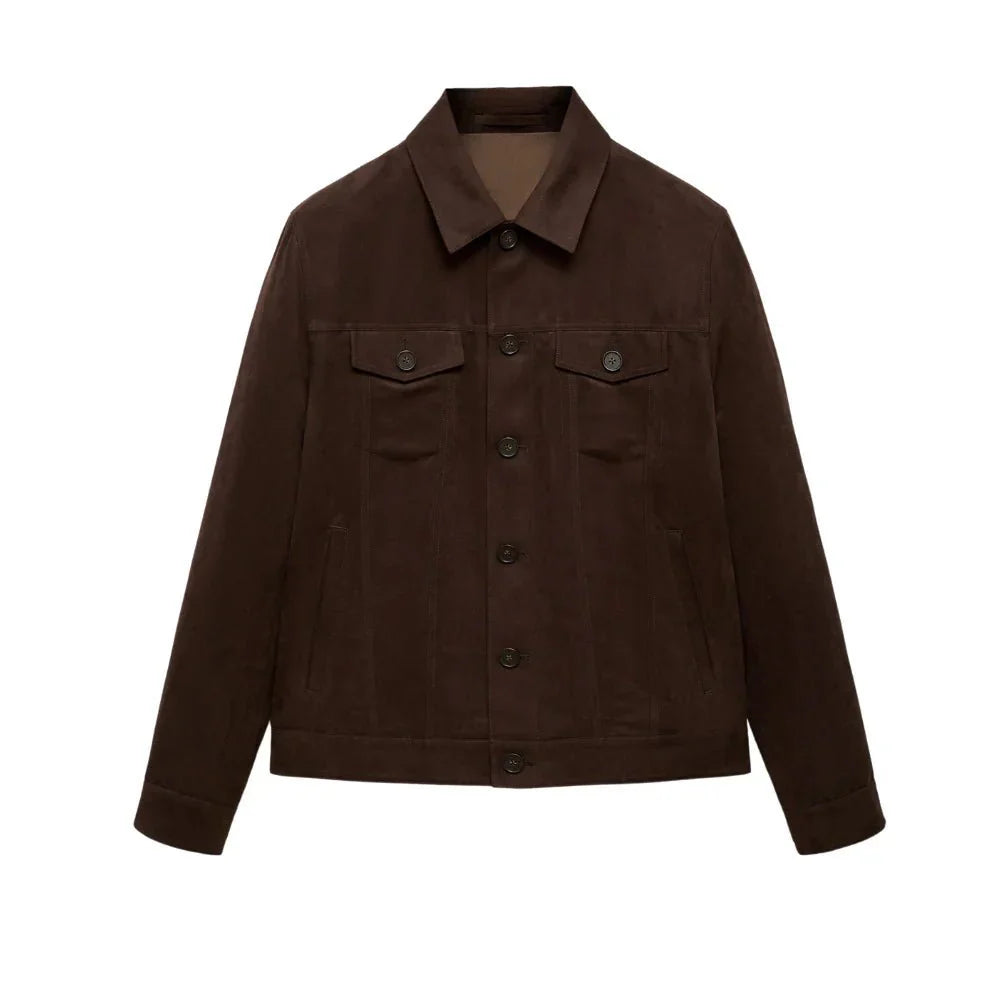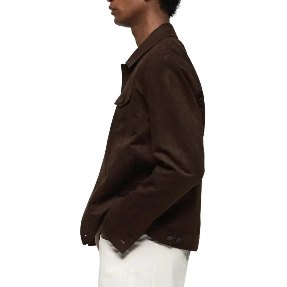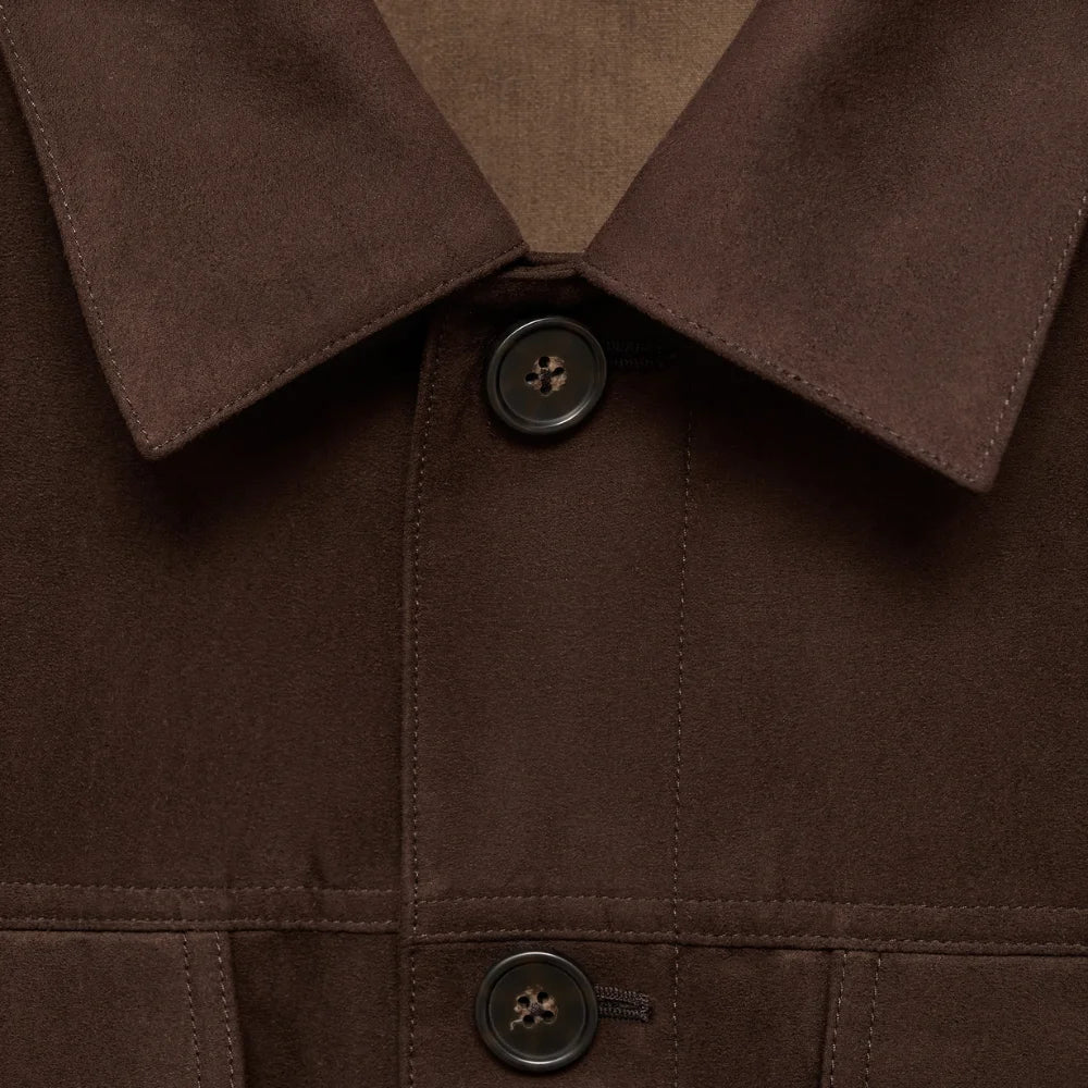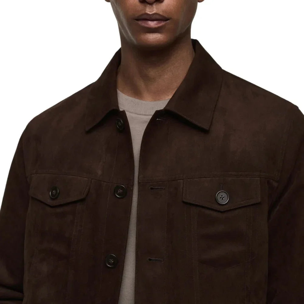 Be the first to review “Men’s Shirt Collar Dark Brown Suede Leather Trucker Jacket” Cancel reply