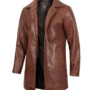 The Mens Tan Distressed Leather Car Coat transcends fashion trends, making it a timeless addition to your wardrobe. It’s a statement piece that reflects your rugged individuality and refined sense of style.