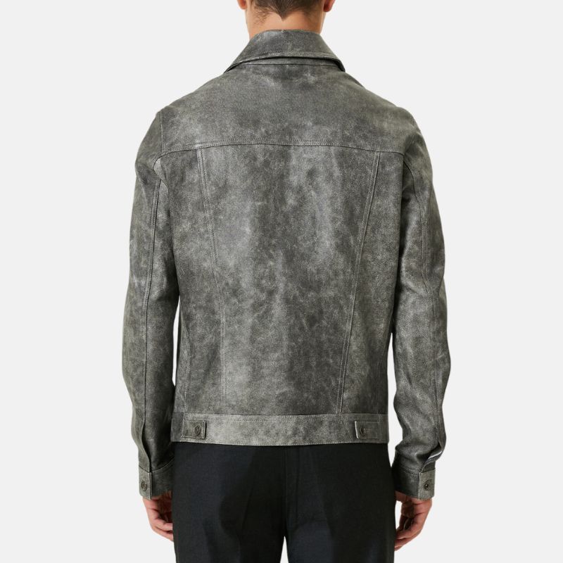 This men’s distressed trucker grey leather jacket is a stylish take on a classic design. It’s made from 100% premium leather and has a comfortable fit with a soft viscose lining. This trucker leather jacket features a classic trucker style with a shirt collar, front button closure and button cuffs. The four outer pockets and one inner pocket provide ample storage for your essentials.