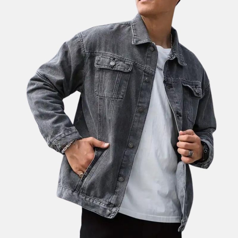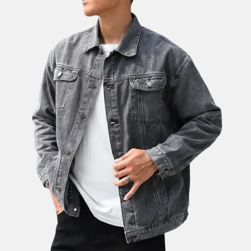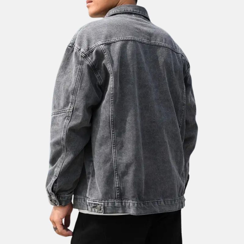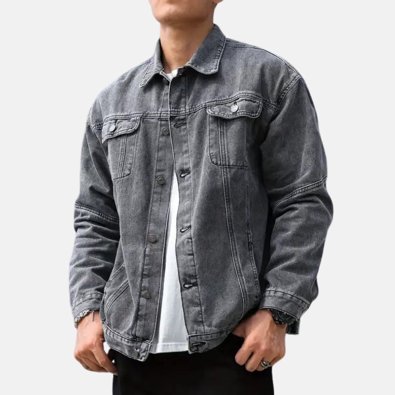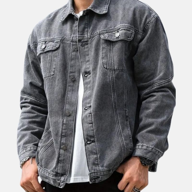 Vintage Button-up Mens Faded Grey Denim Jacket
