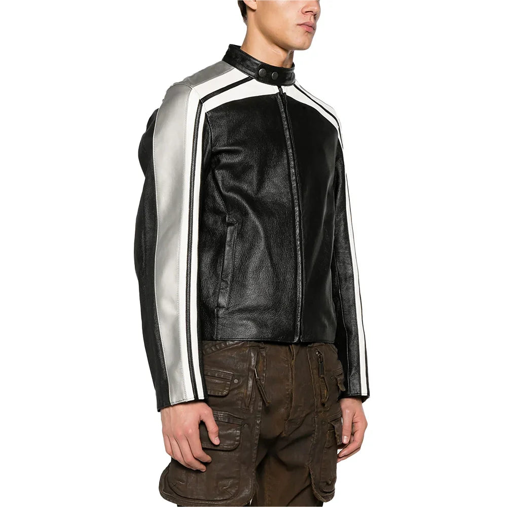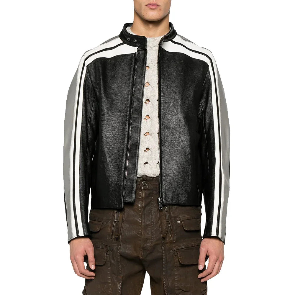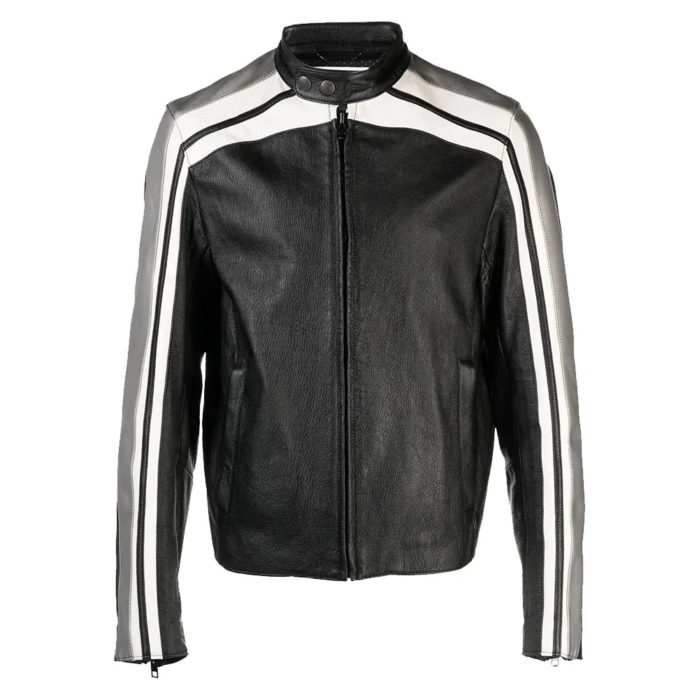 Be the first to review “Men’s Vintage White Stripe Grey Leather Jacket” Cancel reply
