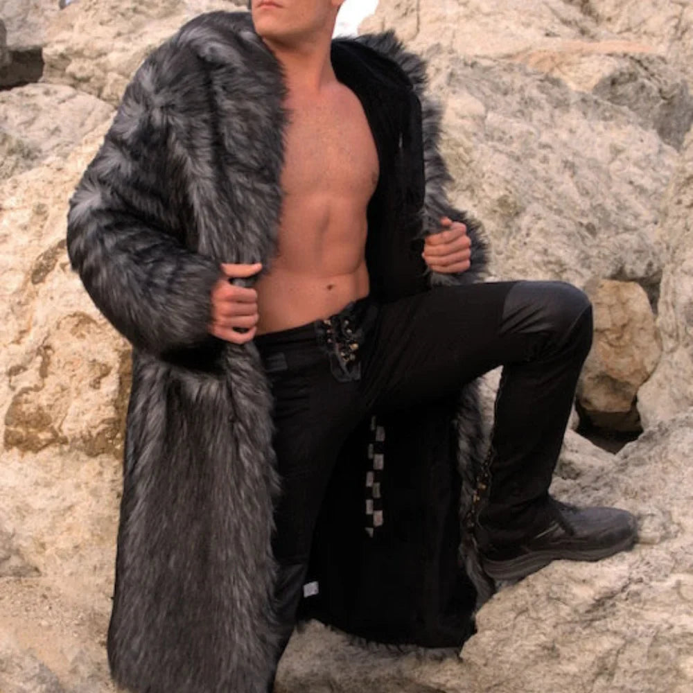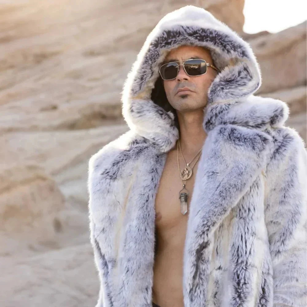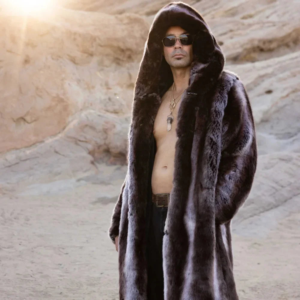 Introducing the Arthur Coat, crafted from the softest French Tissavel Faux fur. This luxurious Fur Faux Coat Men’s is perfect for festivals or chilly nights. It features five pockets, backpack straps, and a zip-off hood for convenience. Fully lined with plush velour, the Arthur offers warmth with style, including two fur-lined outer pockets and deep inner zipper pockets. The slim, mid-calf fit ensures you’ll feel confident and fierce. But what truly sets the Arthur apart is its handcrafted quality, a testament to our commitment to superior design and your satisfaction.