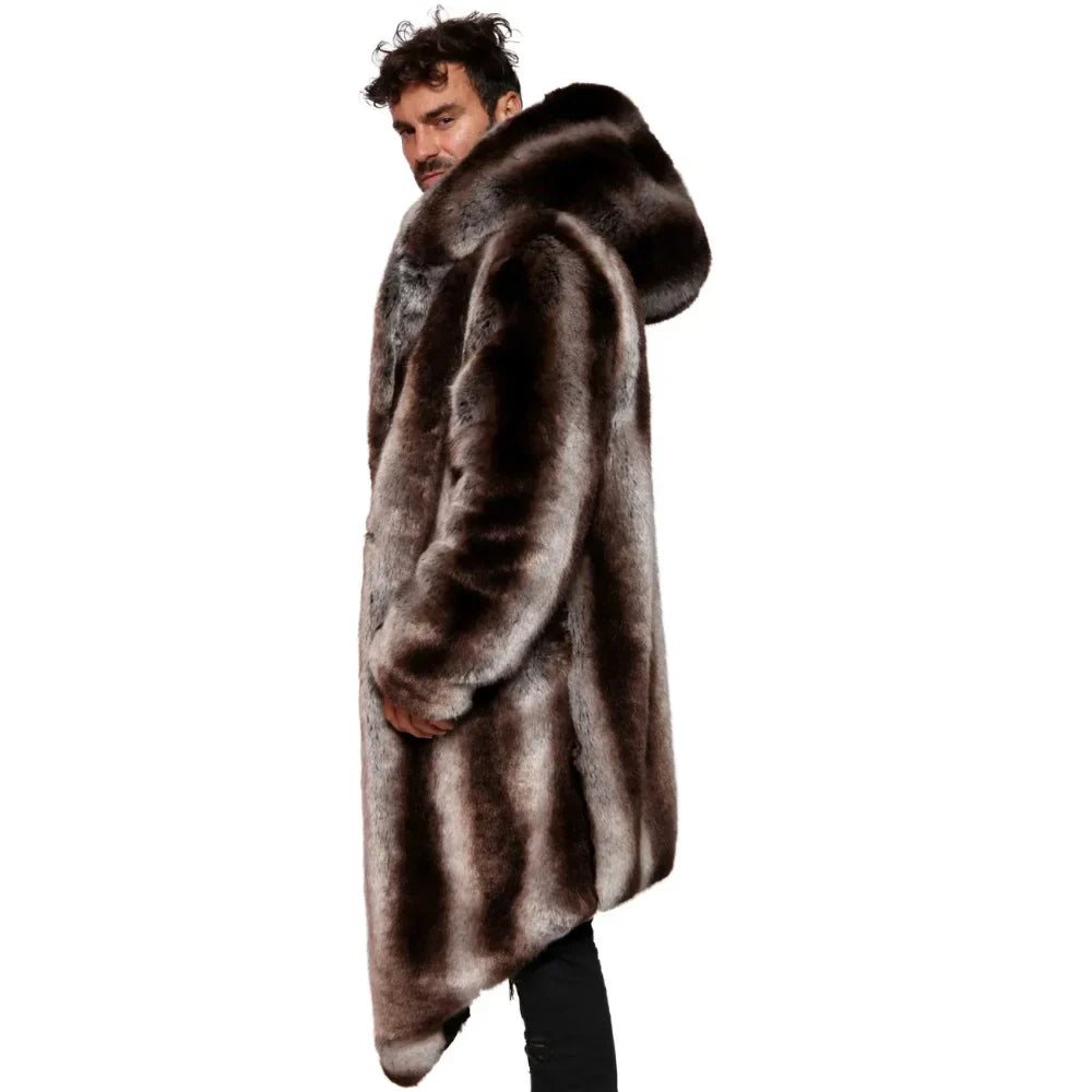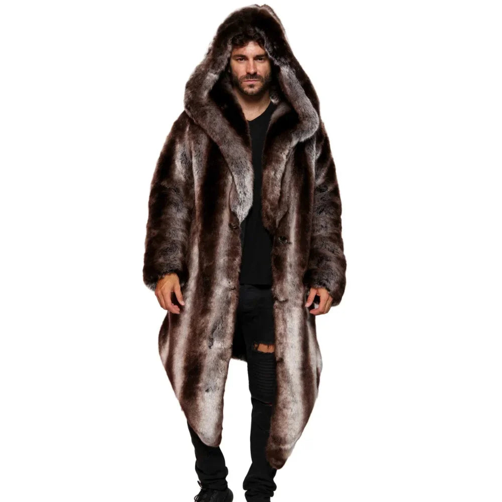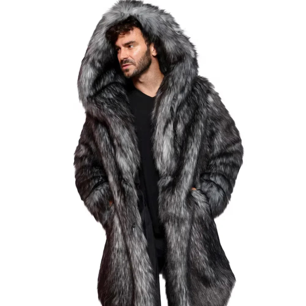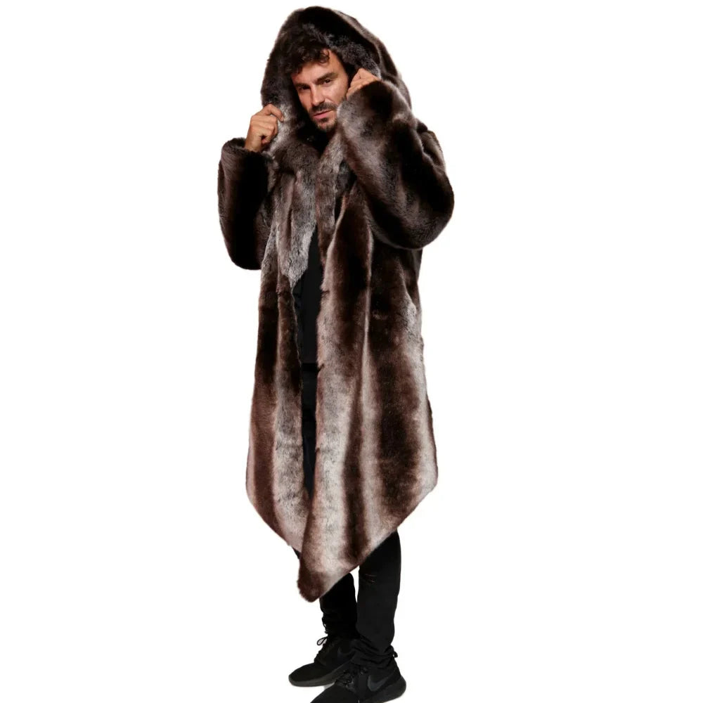 Introducing the Arthur Coat, crafted from the softest French Tissavel Faux fur. This luxurious Fur Faux Coat Men’s is perfect for festivals or chilly nights. It features five pockets, backpack straps, and a zip-off hood for convenience. Fully lined with plush velour, the Arthur offers warmth with style, including two fur-lined outer pockets and deep inner zipper pockets. The slim, mid-calf fit ensures you’ll feel confident and fierce. But what truly sets the Arthur apart is its handcrafted quality, a testament to our commitment to superior design and your satisfaction.