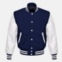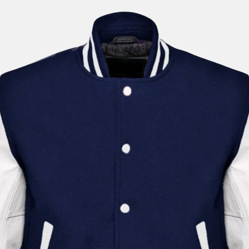 Mens Wool Navy Blue Varsity Jacket with Leather Sleeves