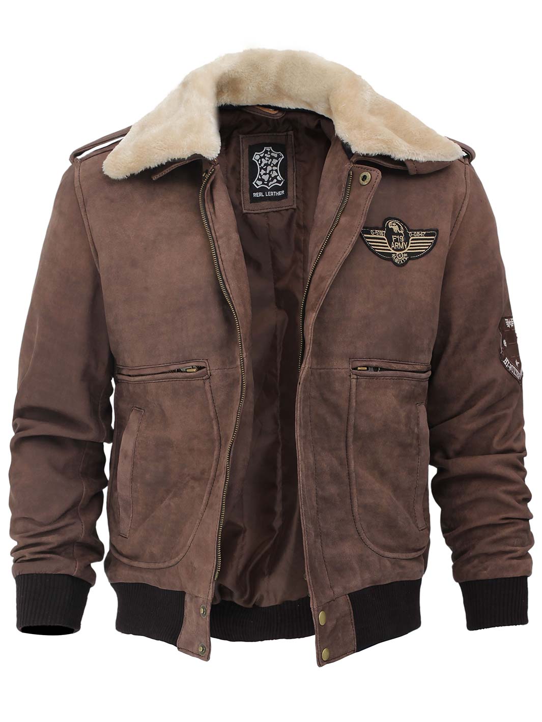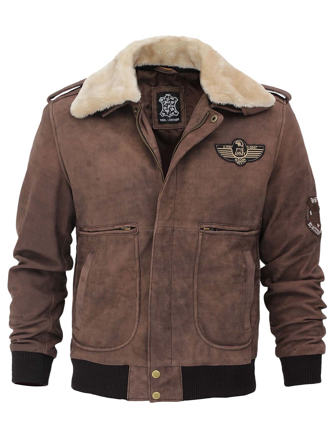 Be the first to review “Men’s Brown Suede Bomber Aviator Jacket with Removeable Shearling Collar” Cancel reply