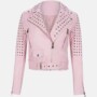 Pink Brando Biker Studded Leather Jacket For Womens