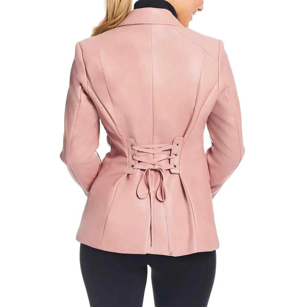 Pink Womens Leather Blazer
