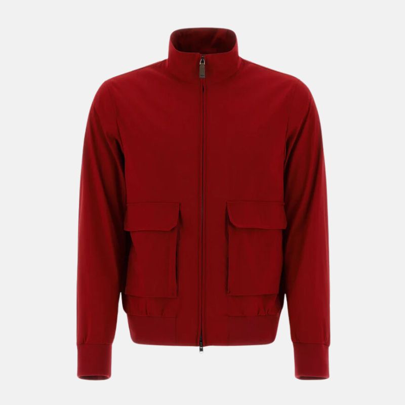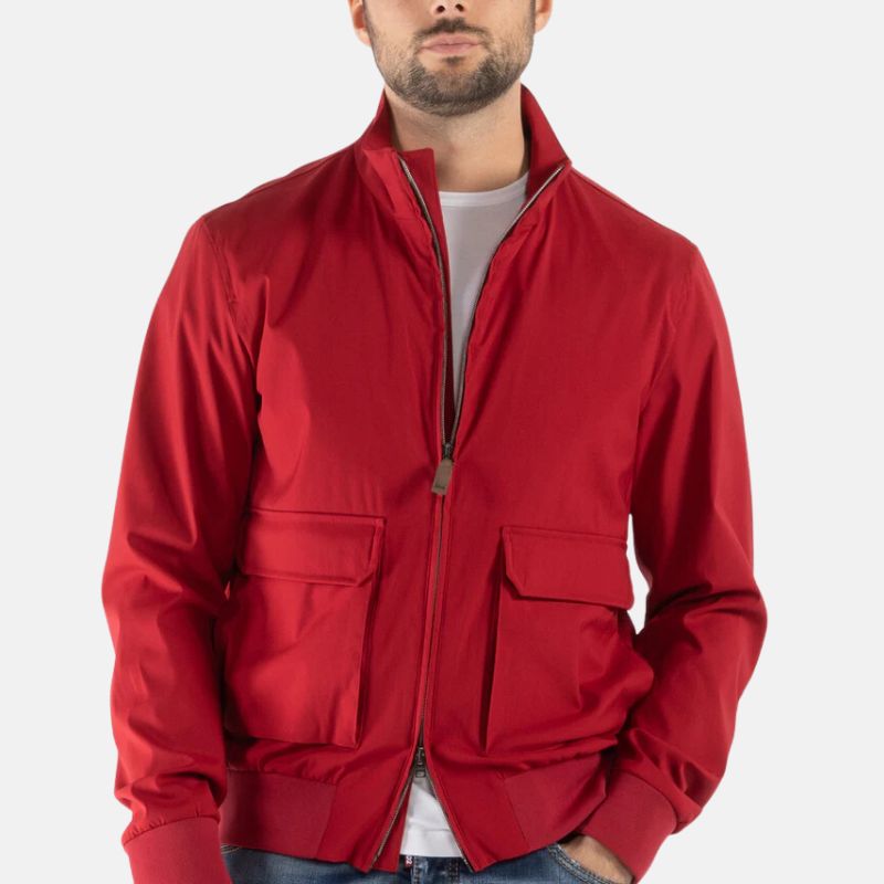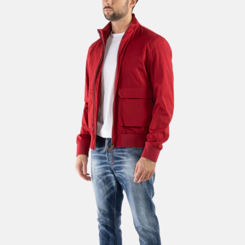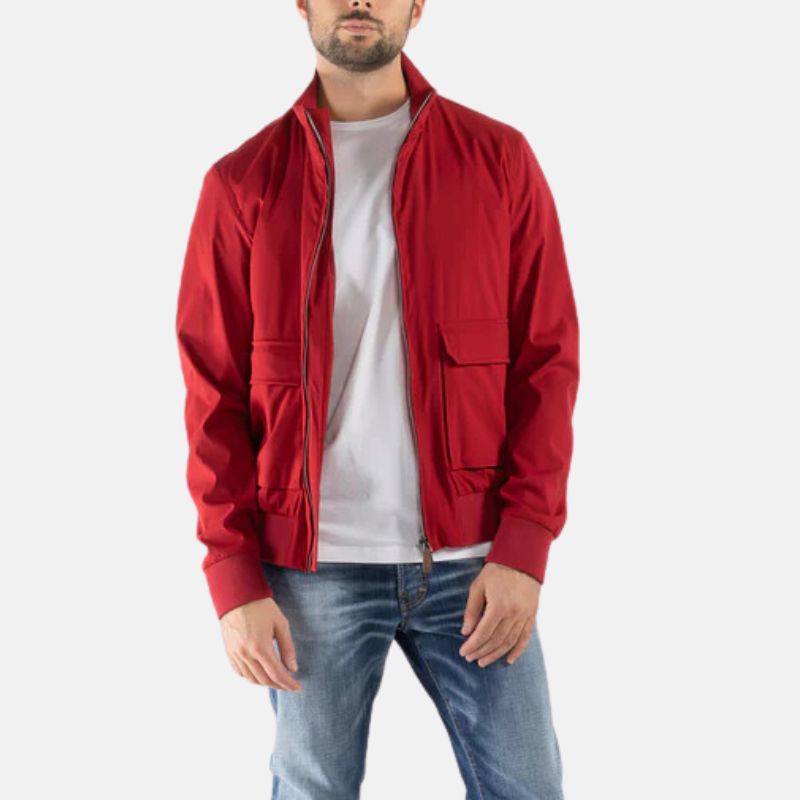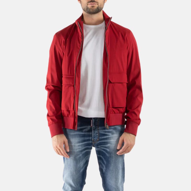 Men’s Red Bomber Jacket With Flap Pockets