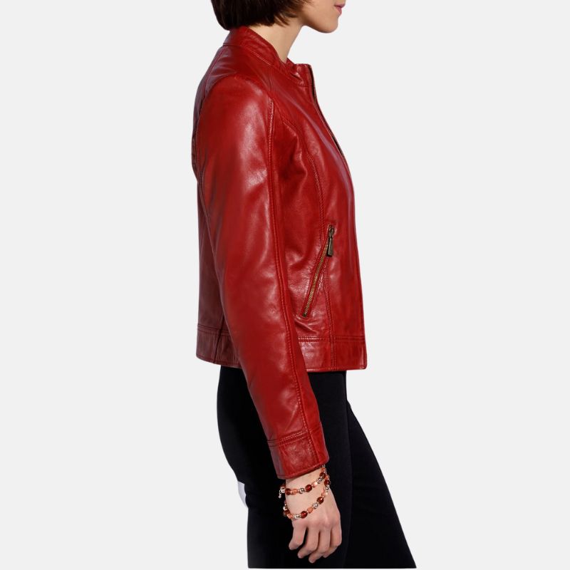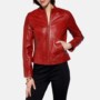 Biker Style Womens Red Leather Jacket