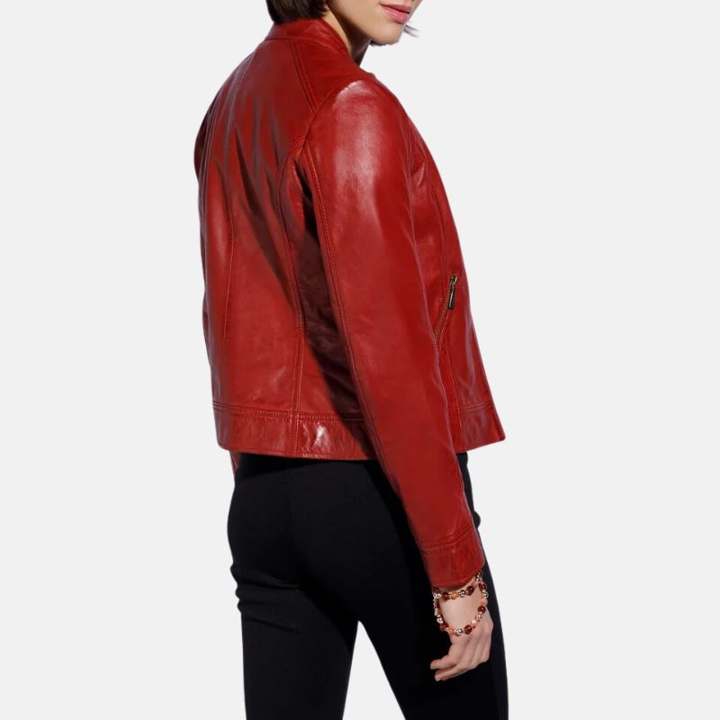 Red Leather Biker Jacket Womens