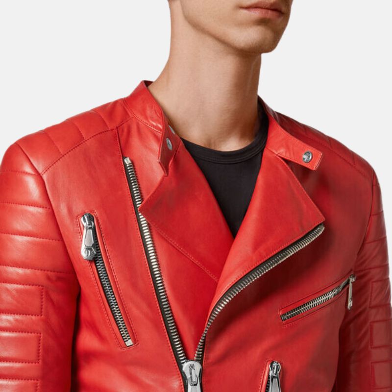 Biker Asymmetrical Quilted Red Leather Jacket For Mens