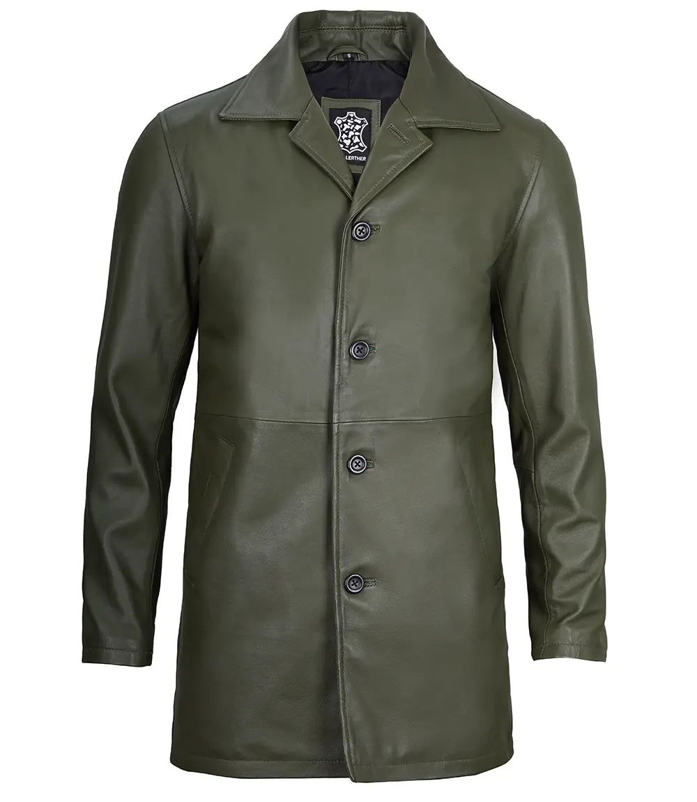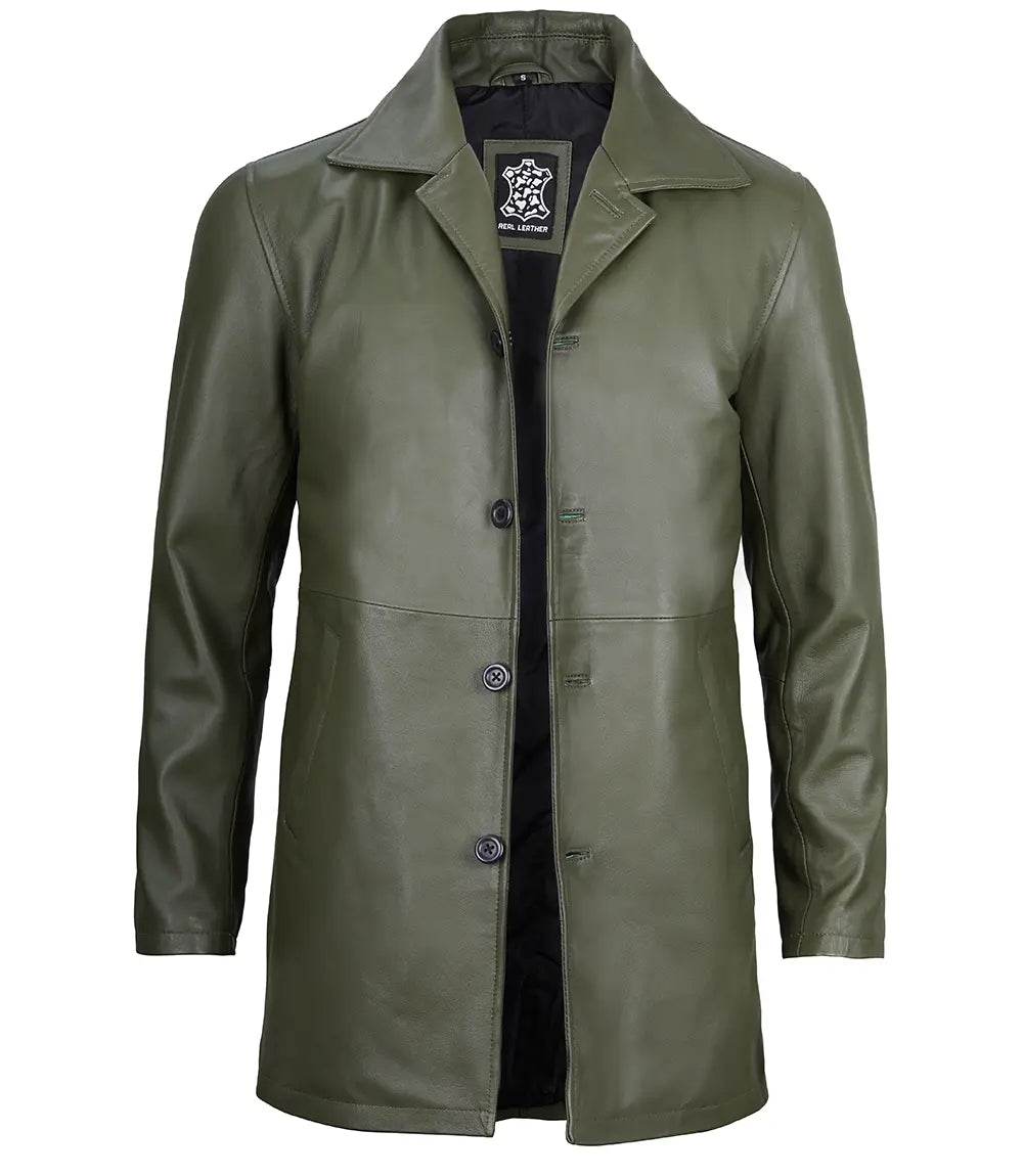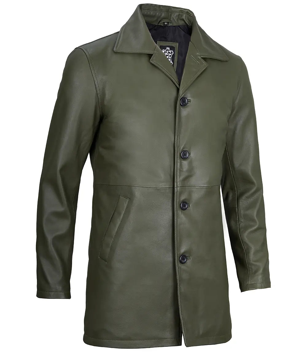 Santiago Military Green Real Leather Car Coat