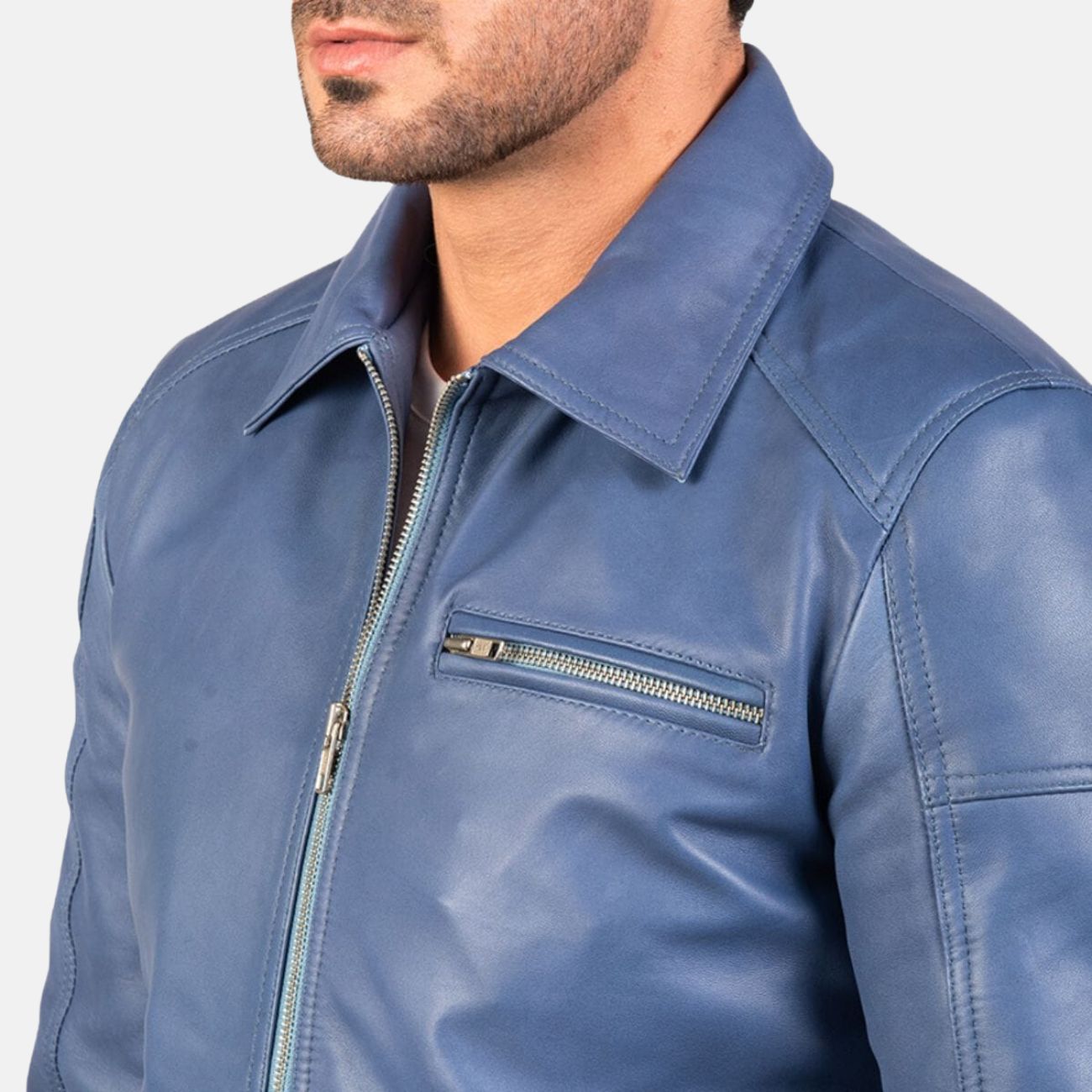 Be the first to review “Shirt Collar Blue Leather Jacket Mens” Cancel reply