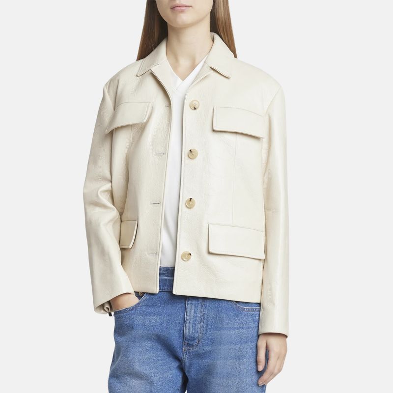 Shirt Style Button Up Womens White Leather Jacket