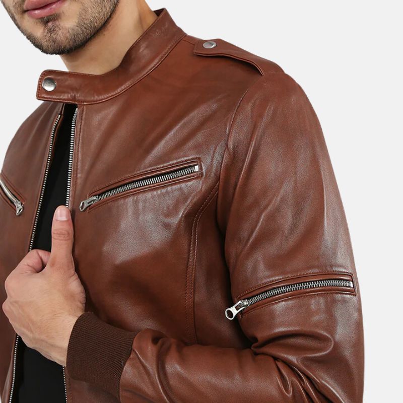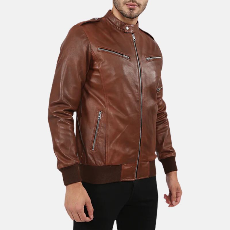 Dark Brown Leather Bomber Jacket For Mens