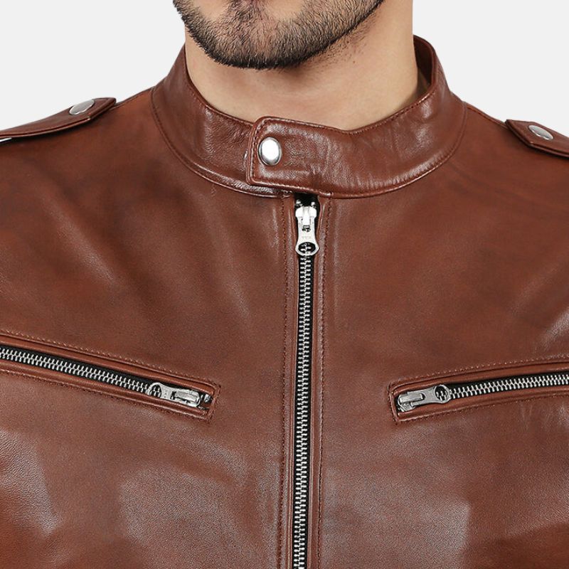 Introducing our Men’s Dark Brown Bomber Leather Jacket – a timeless fusion of style & comfort. Crafted from 100% premium leather with a soft viscose inner, it’s perfect for versatile, everyday wear. The front zipper closure, snap tab button collar, rib knitted cuffs & hemline add a touch of sophistication. Featuring four outer zipper pockets & one inner pocket, it’s both practical & stylish. Pair it effortlessly with jeans for a casual day out or layer it over a shirt for a polished look. Embrace the classic appeal of this jacket, suitable for any occasion.