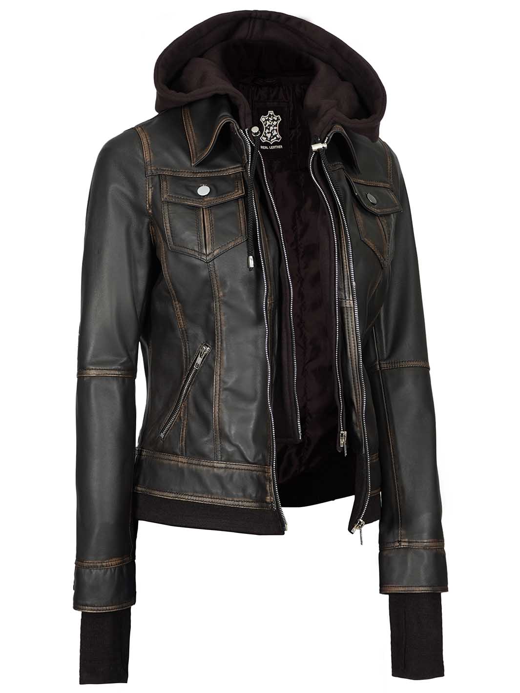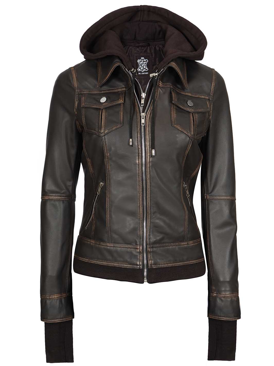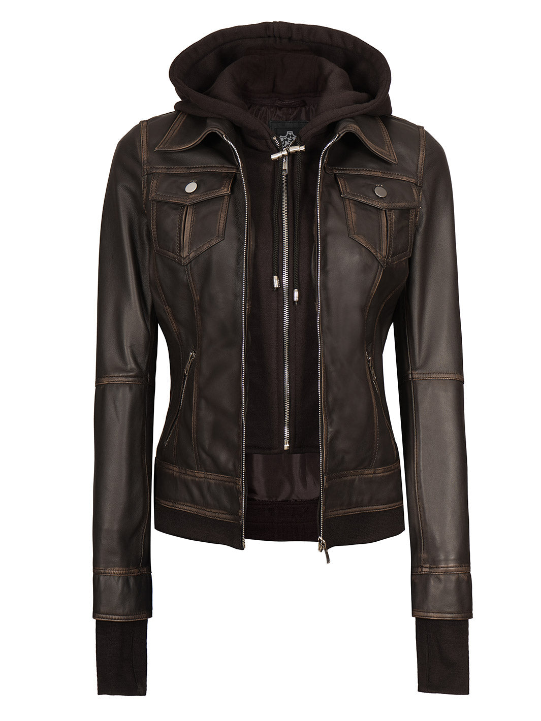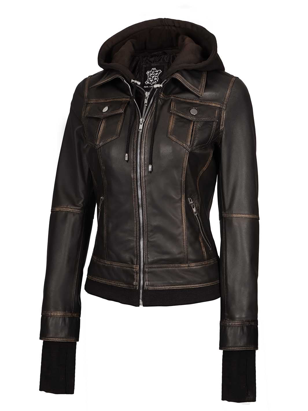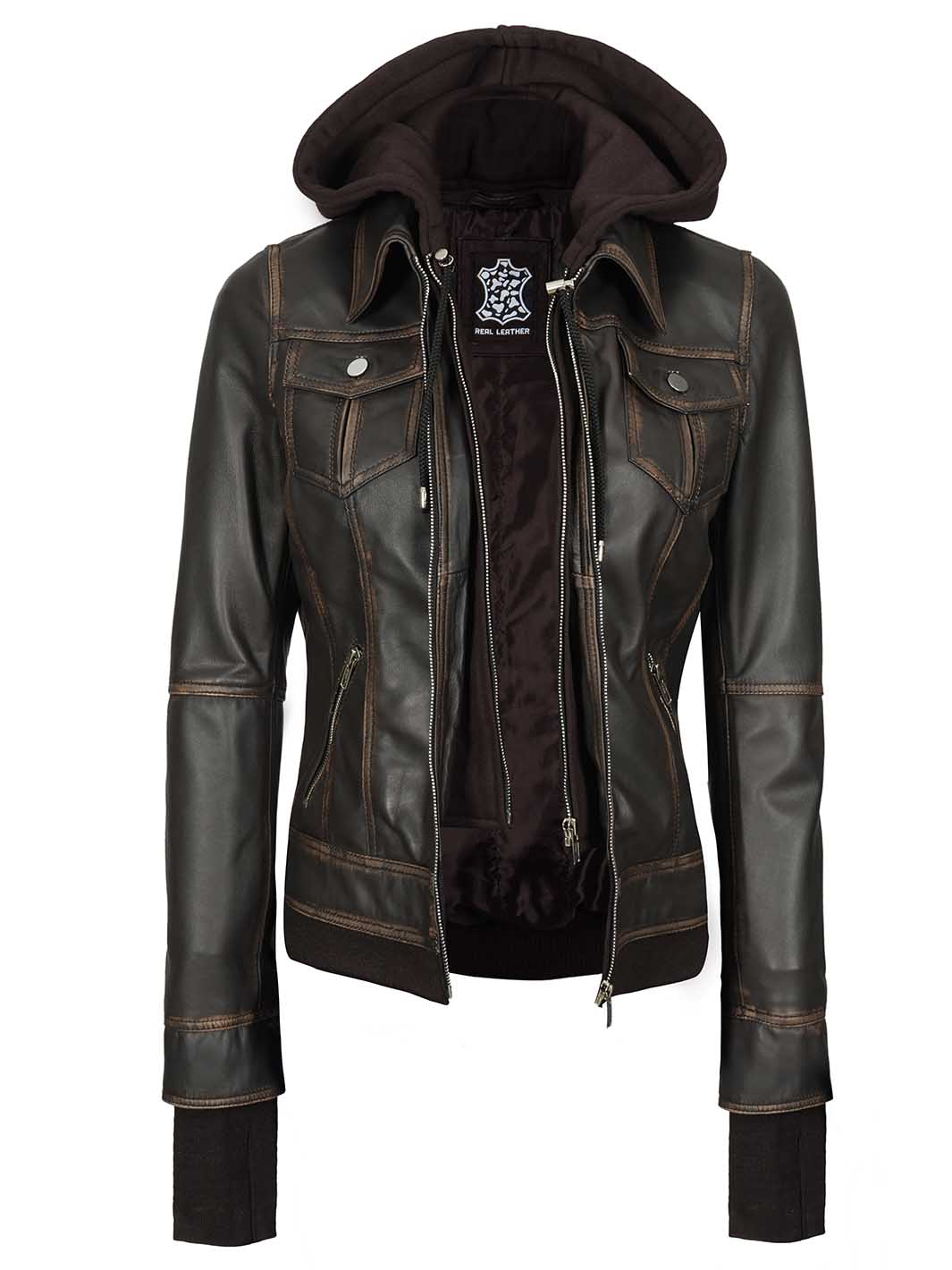Be the first to review “Tralee Women Dark Brown Ruboff Bomber Leather Jacket With Hood” Cancel reply