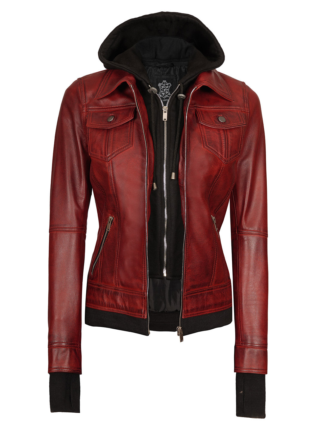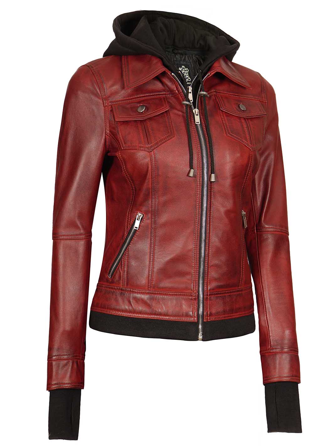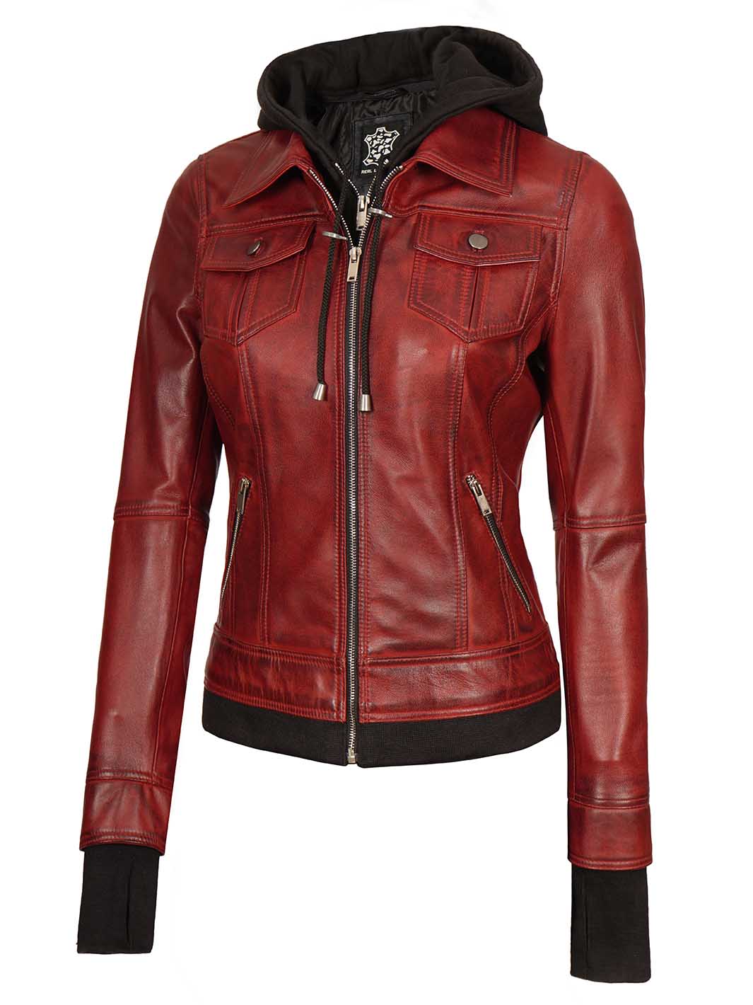 Be the first to review “Maroon Womens Leather Bomber Jacket with Hood” Cancel reply