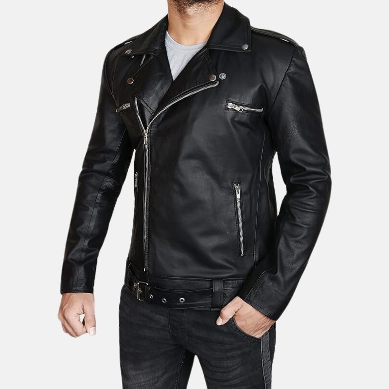 Be the first to review “Negan Men’s Black Belted Asymmetrical Moto Leather Jacket” Cancel reply