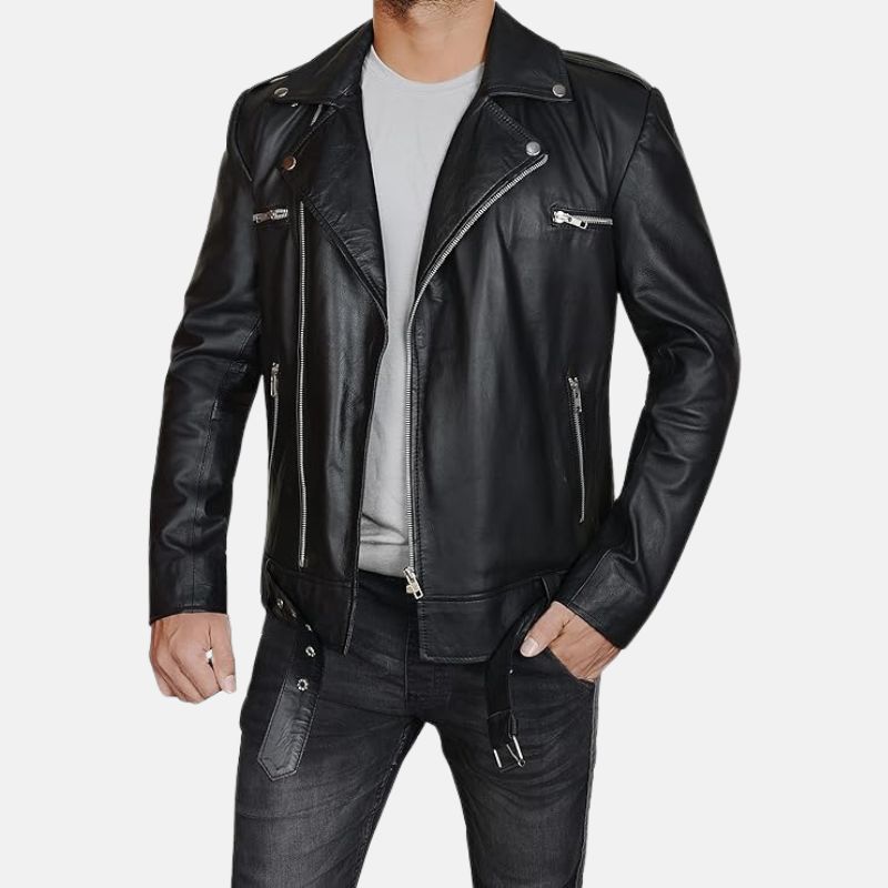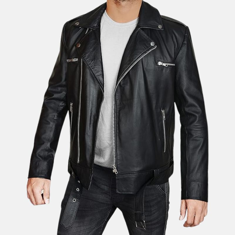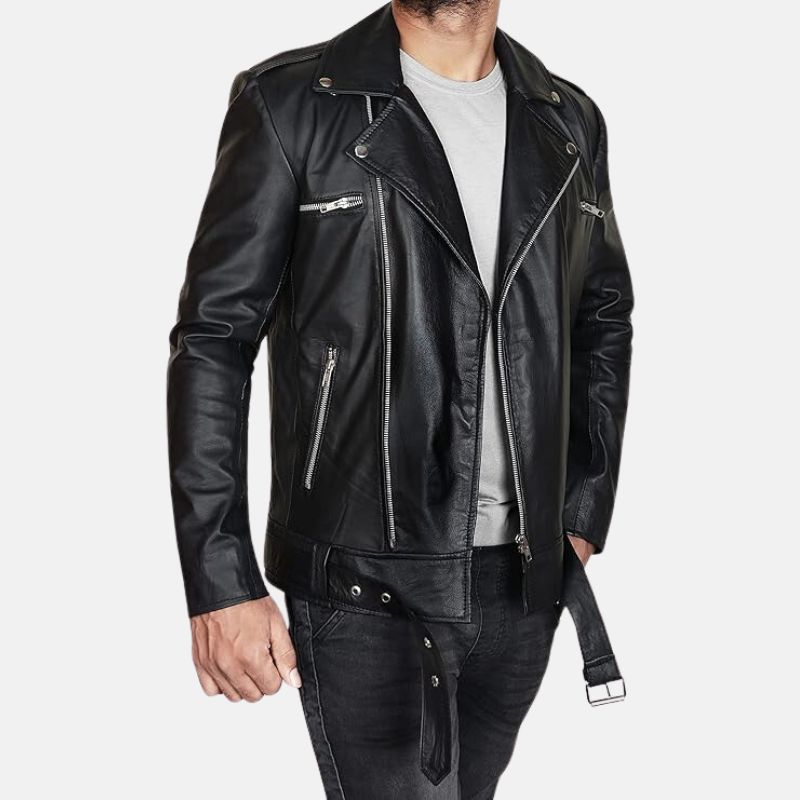 Elevate your style to legendary status with our Black Asymmetrical Belted Moto Leather Jacket for Men. Crafted from the finest quality leather, this jacket’s one-of-a-kind asymmetrical design, paired with a sleek belt, oozes an aura of rebellious sophistication. Whether you’re conquering the urban jungle or embarking on an epic journey, this jacket guarantees you do it with an unmistakable and unparalleled flair that sets you apart from the crowd.