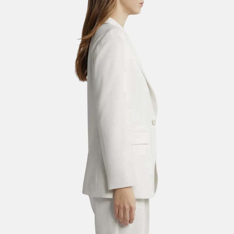 This formal white womens blazer is the perfect addition to your wardrobe for work or special occasions. Made from a soft and luxurious terry rayon material, it features a clean one button closure and a classic notch lapel. The smooth viscose lining keeps you comfortable all day long. Dress this one button blazer up for a wedding or keep it chic for the office with this versatile blazer.