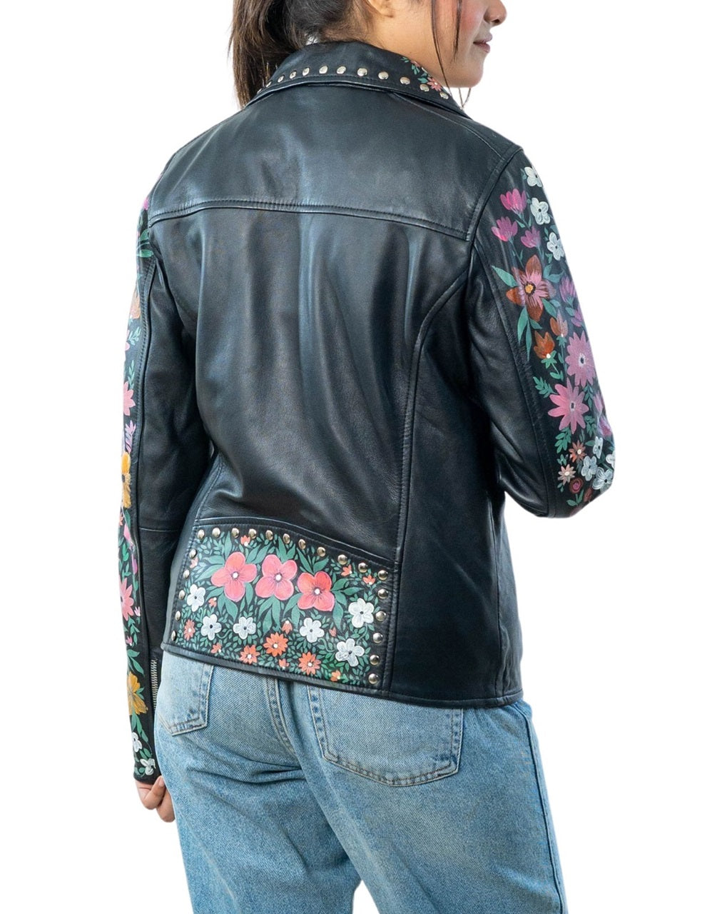 Be the first to review “Blossom Hand-Painted Black Leather Biker Jacket” Cancel reply