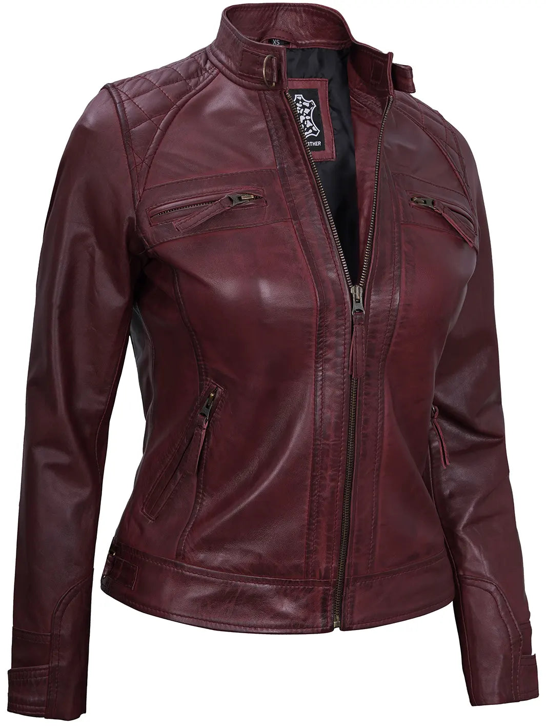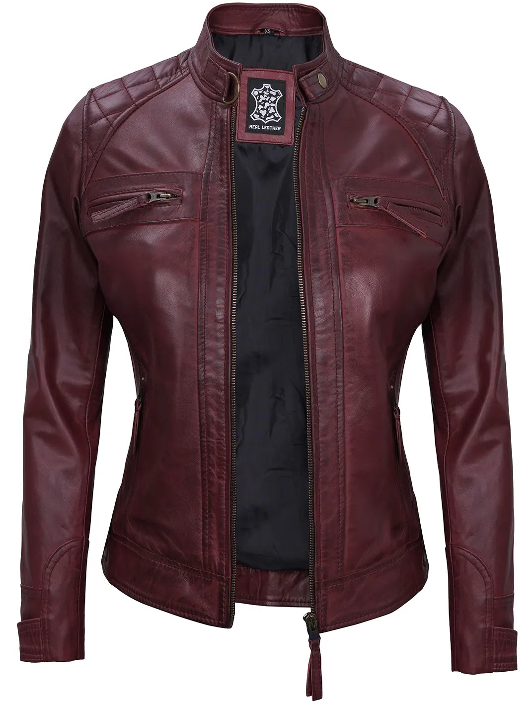 Be the first to review “Johnson Women’s Maroon Quilted Cafe Racer Leather Jacket” Cancel reply