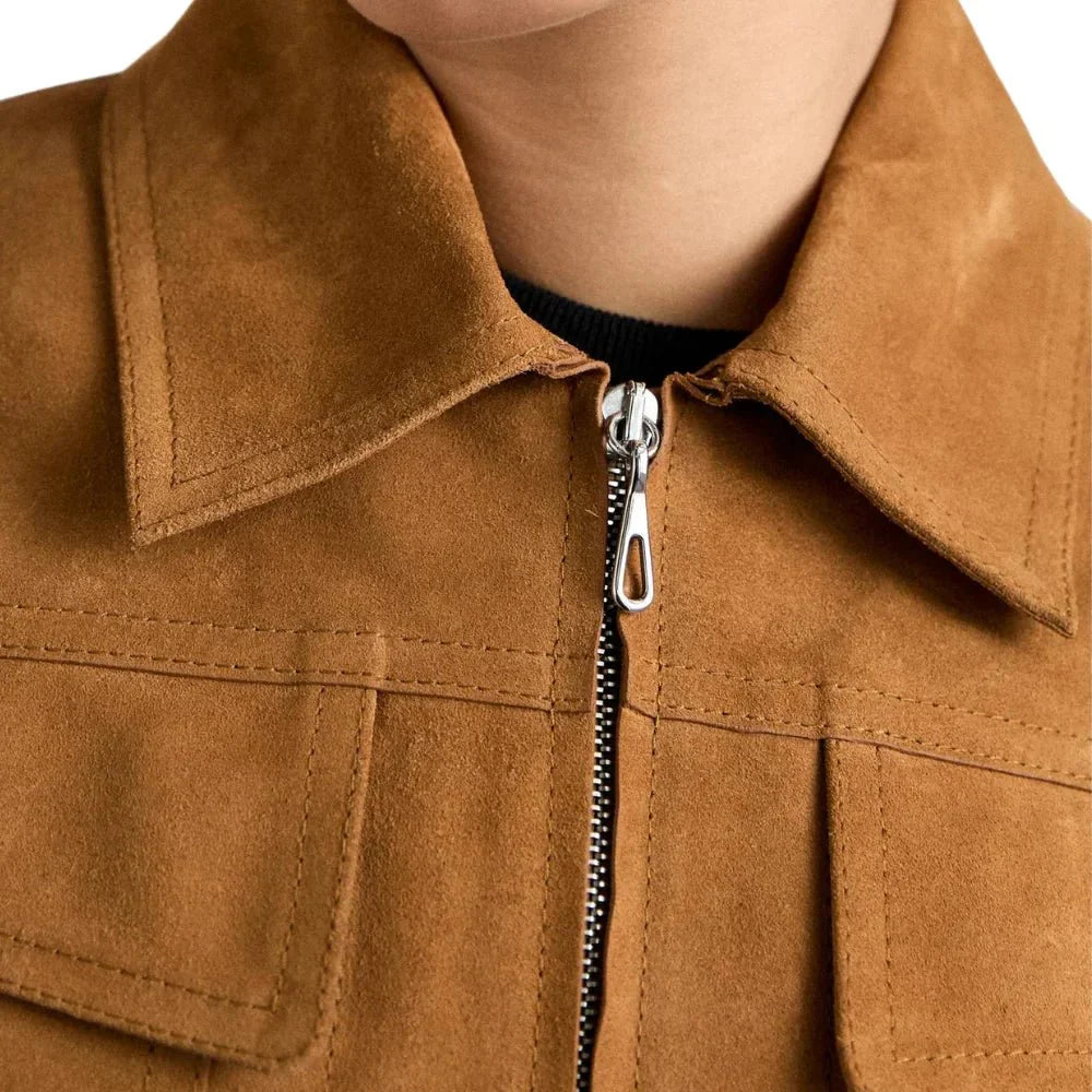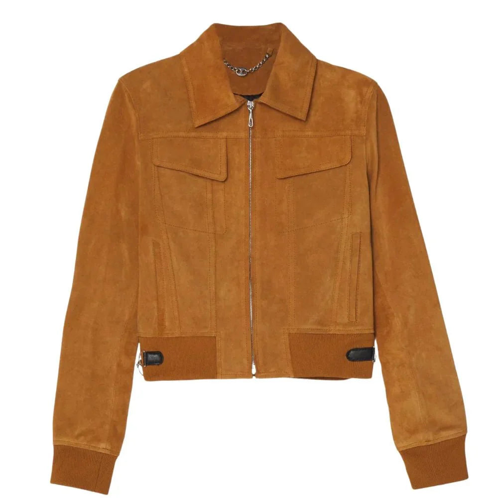 This Womens Brown Suede Bomber Jacket Womens boasts a soft, luxurious feel thanks to its premium suede material. It features a clean and classic design leather bomber design with a front zipper closure, a comfortable shirt collar and ribbed knit cuffs and hemline for a snug fit. This A2 suede bomber jacket adds instant cool to any outfit whether you’re dressing down with jeans and a tee or dressing it up for a night out.