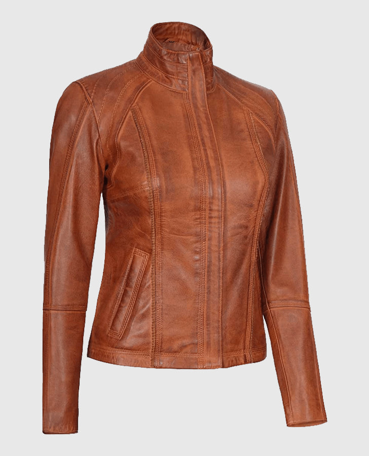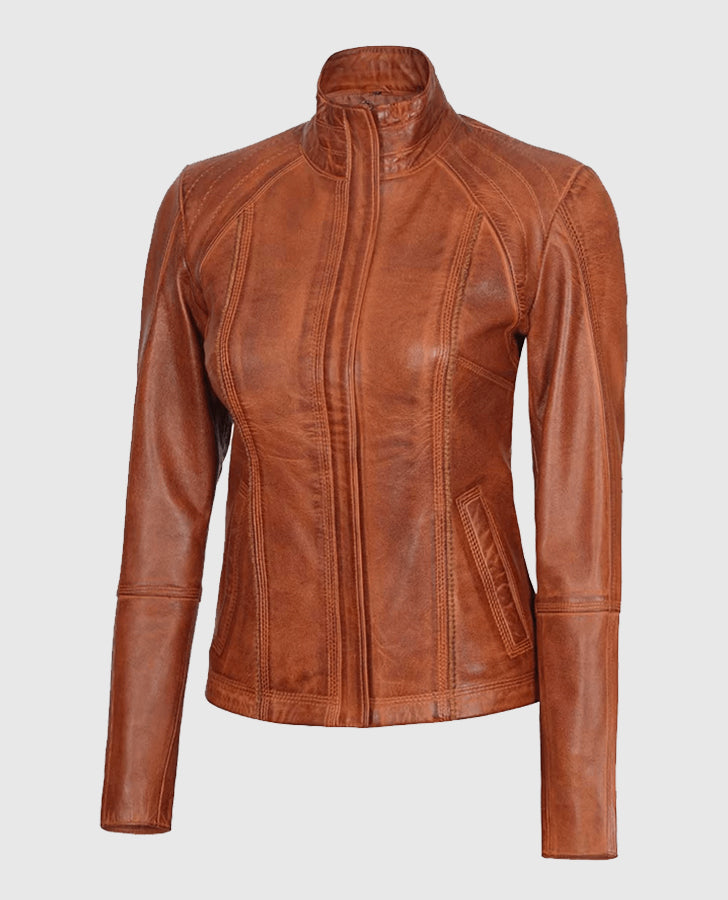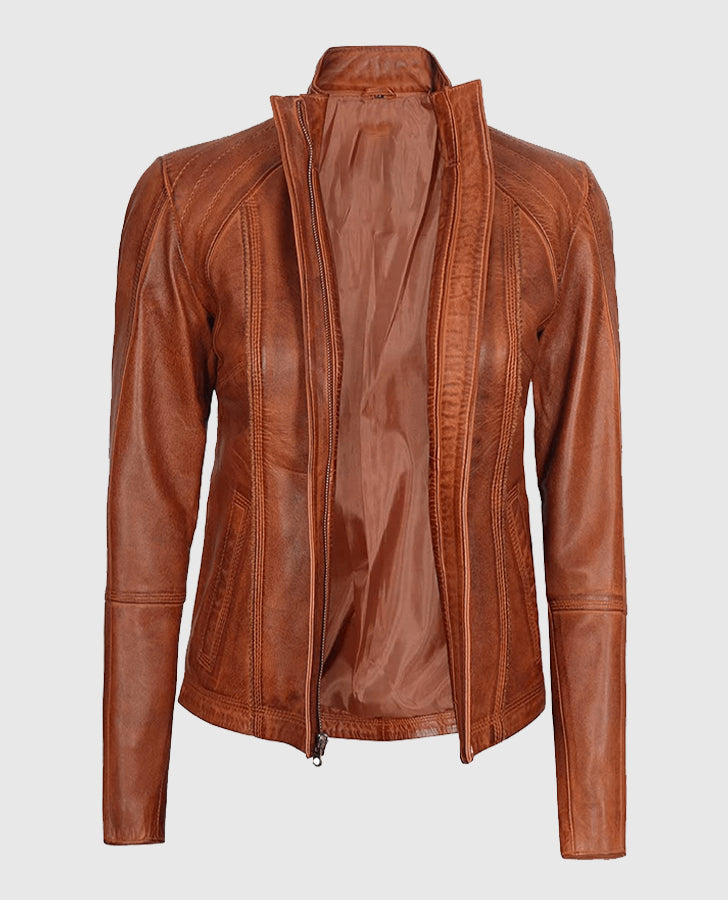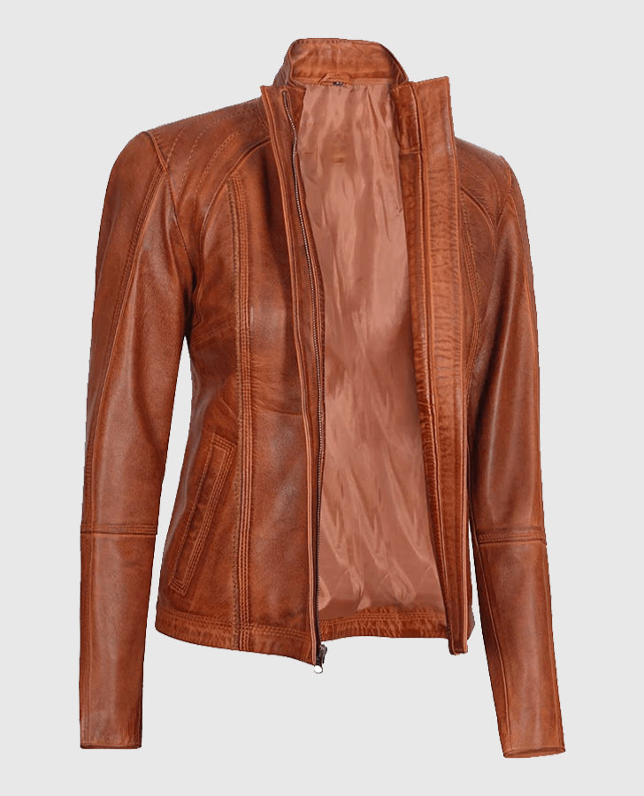 Be the first to review “Women’s Acerra Real Cognac Brown Leather Jacket” Cancel reply