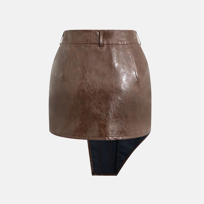 Asymmetrical Button Brown Leather Skirt For Women’s