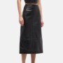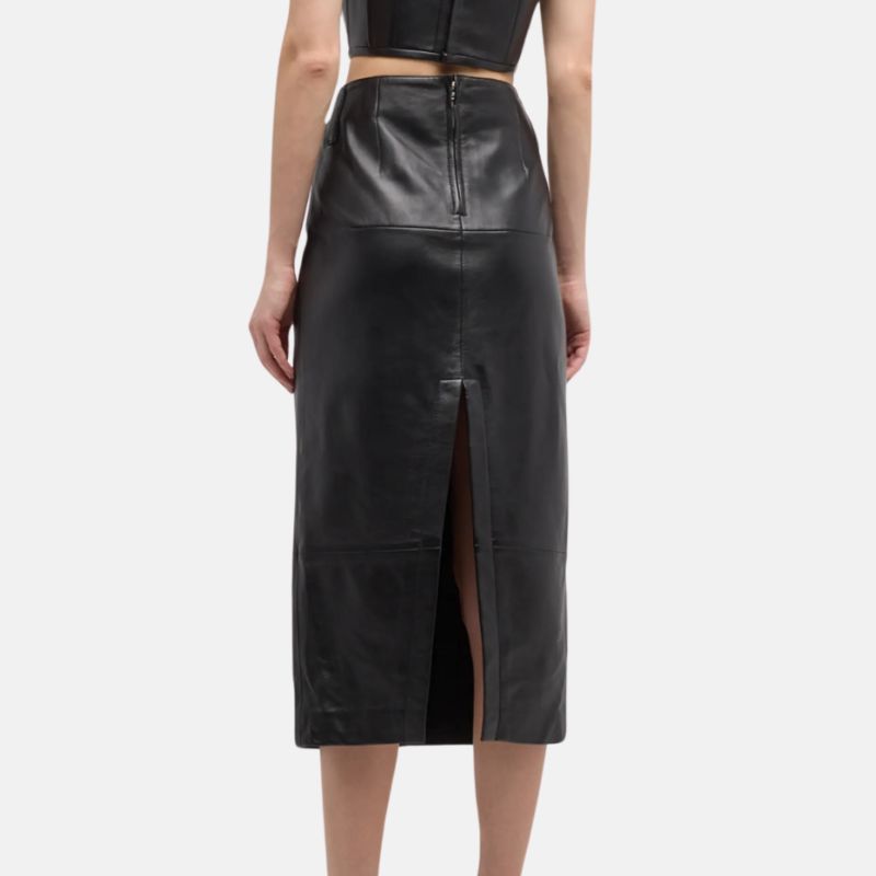 Slim Pencil Black Leather Midi Skirt For Women’s