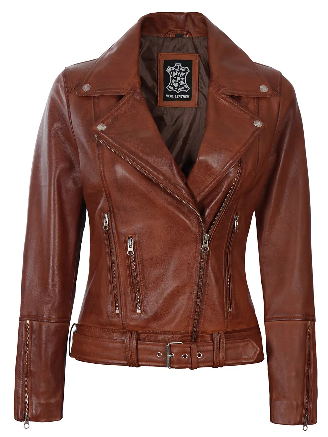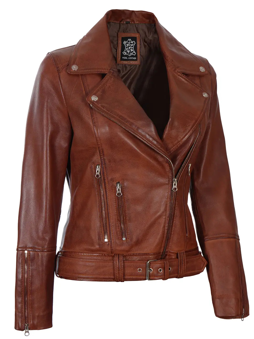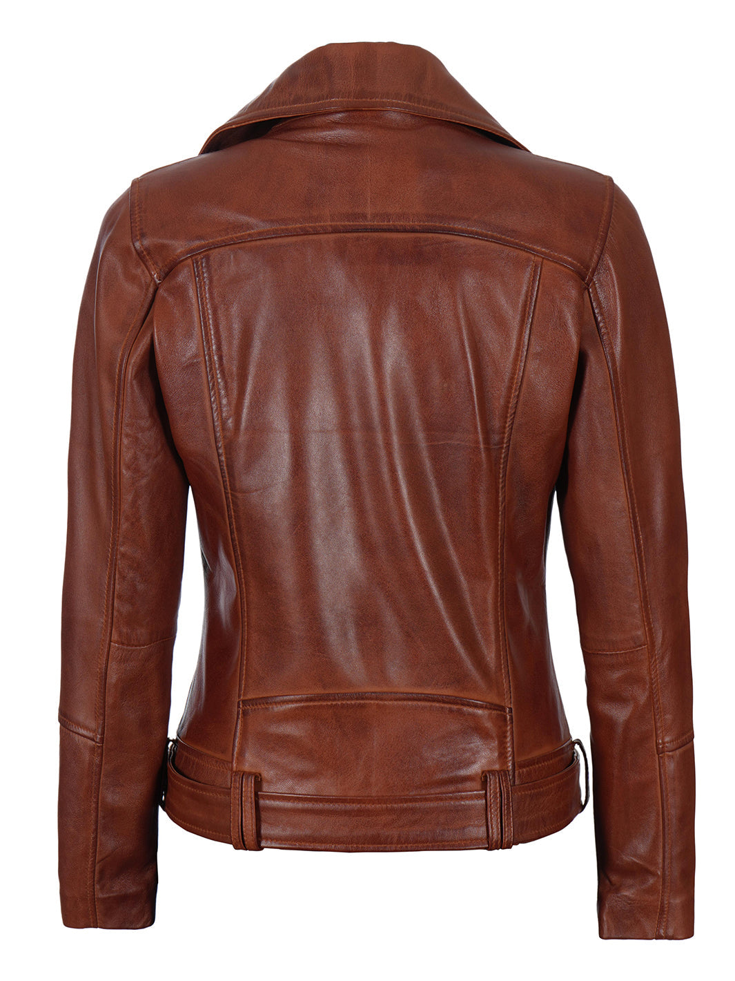 Be the first to review “Elisa Womens Cognac Brown Asymmetrical Motorcycle Leather Jacket” Cancel reply