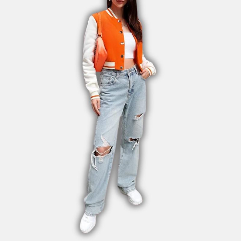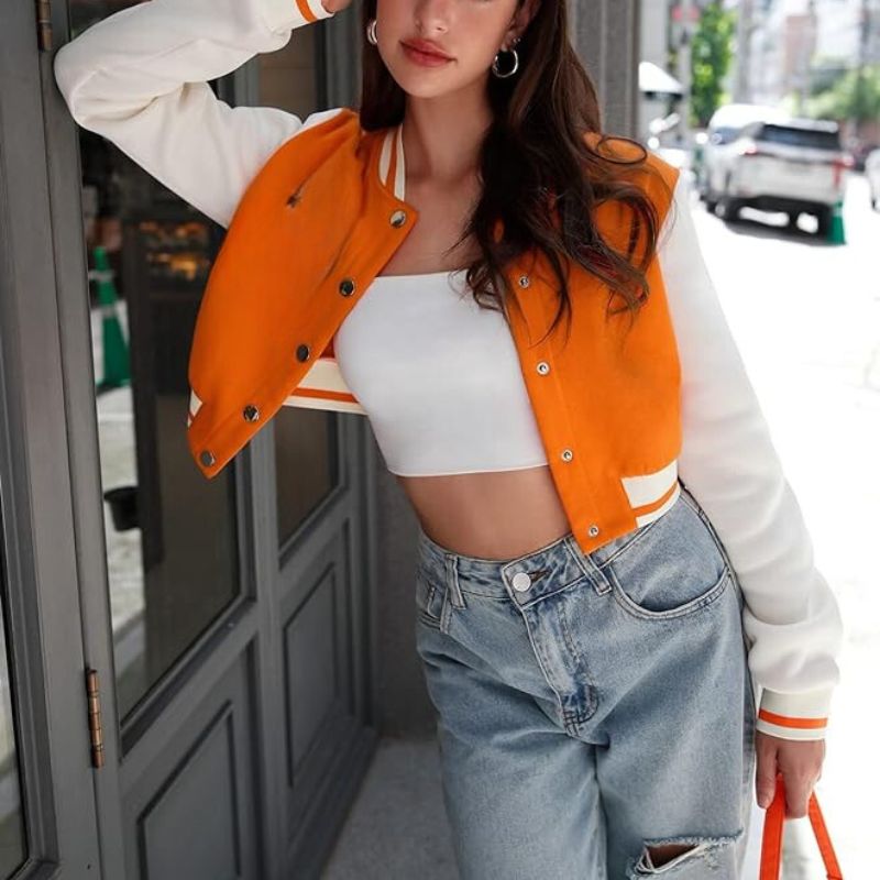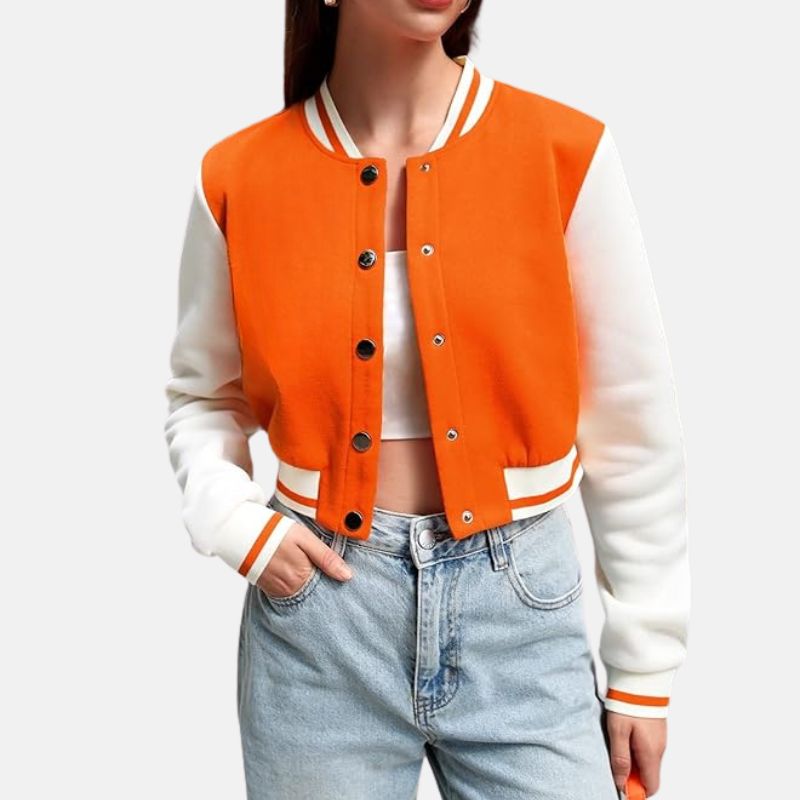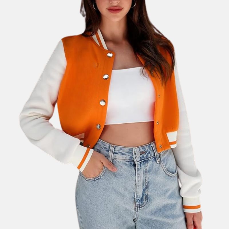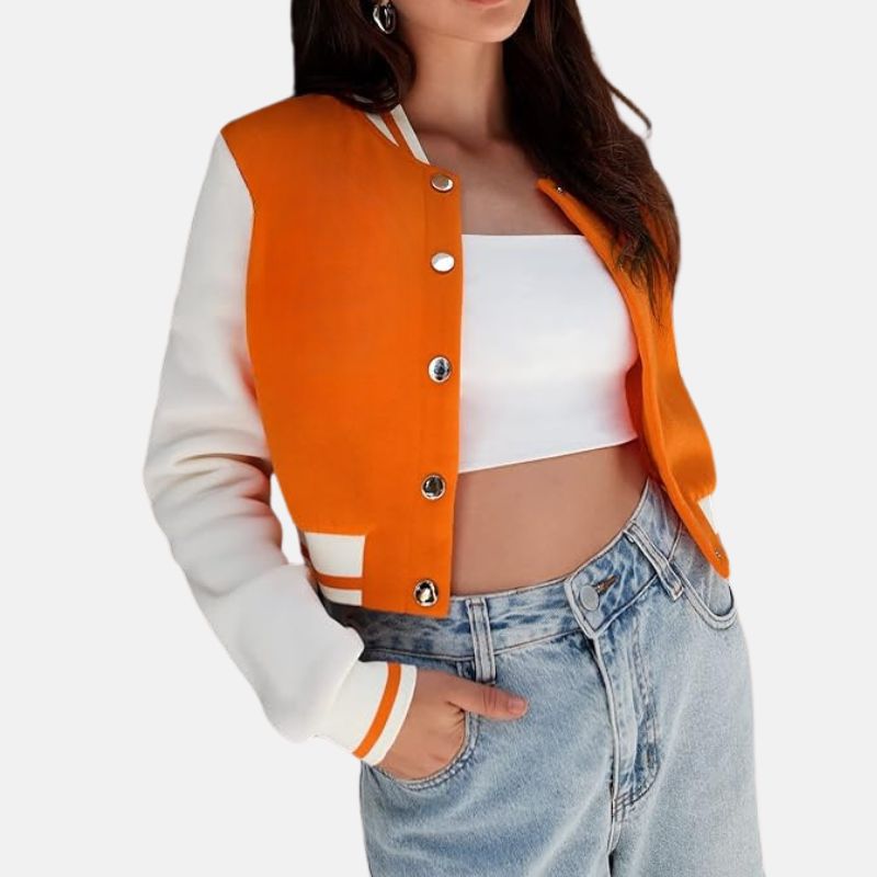 Be the first to review “Cropped Wool Orange Varsity Jacket For Women” Cancel reply