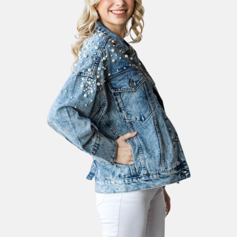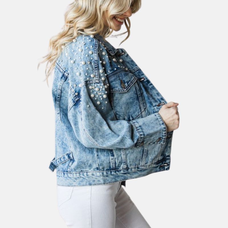 Be the first to review “Women’s Denim Blue Perl Cotton Jean Jacket” Cancel reply