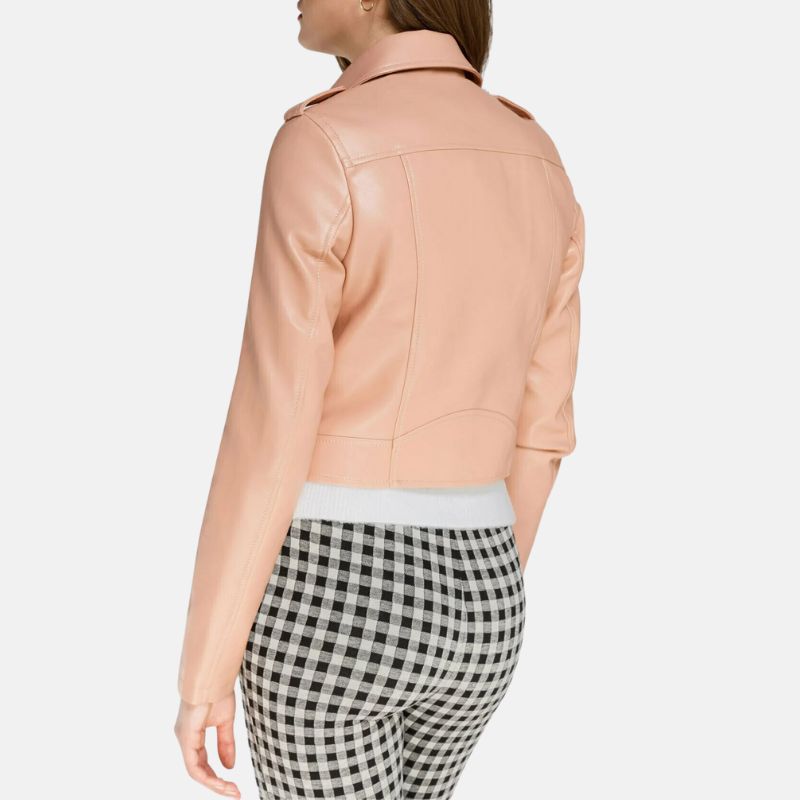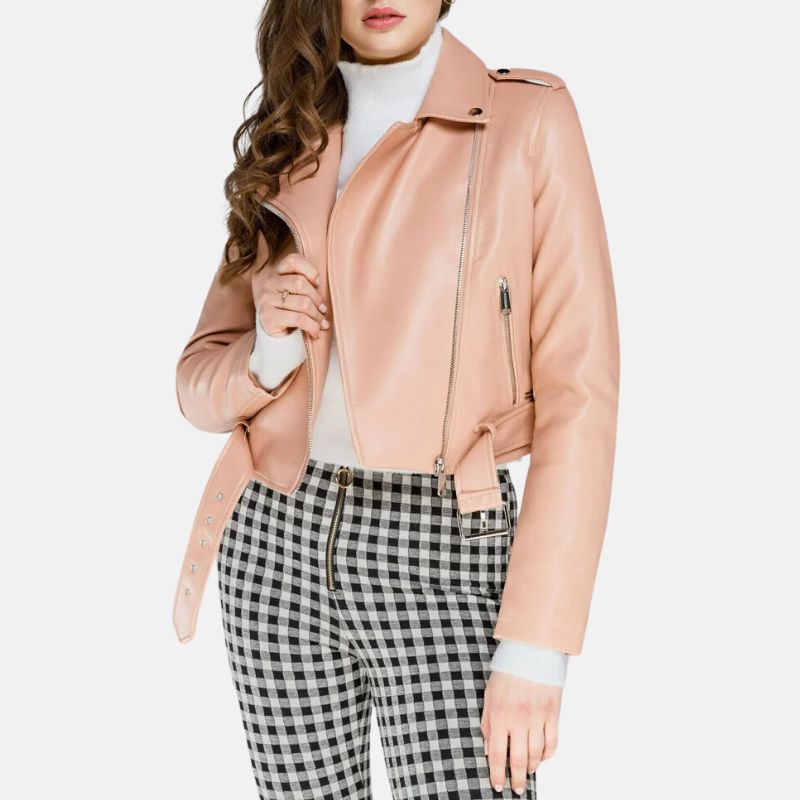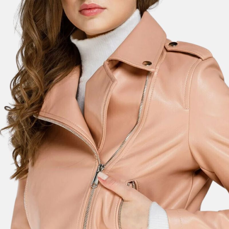 Light Pink Leather Jacket For Womens