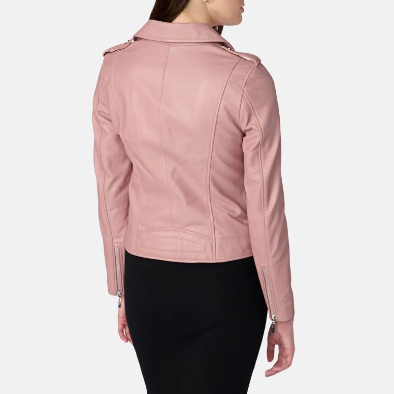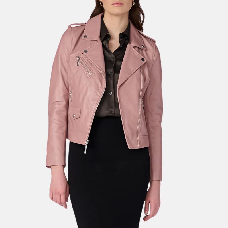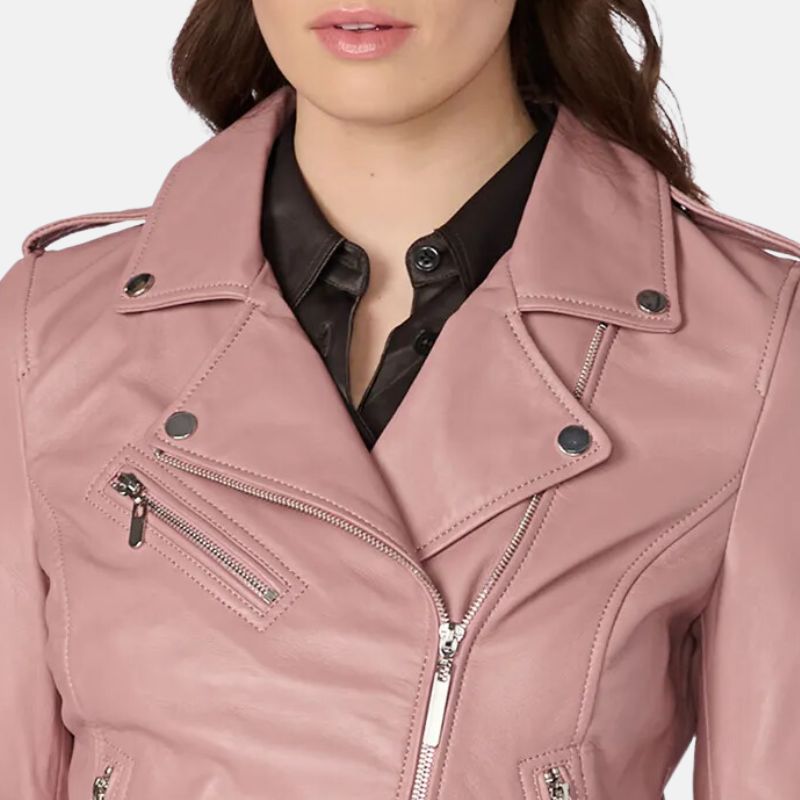 Motorcycle Womens Pink Leather Jacket For Womens