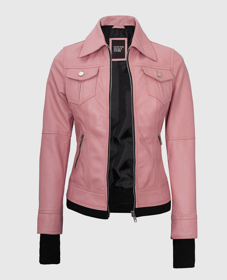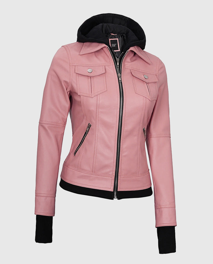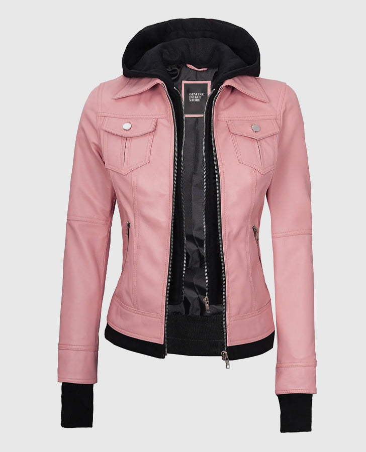 Be the first to review “Women’s Pink Bomber Leather Jacket with Hood” Cancel reply