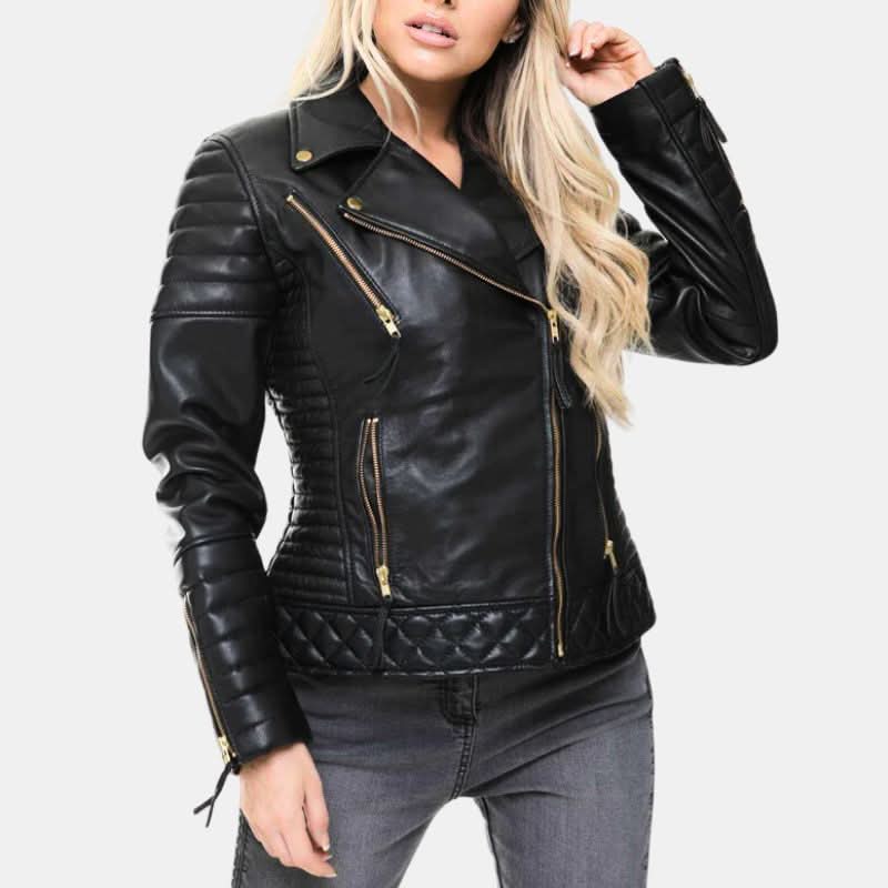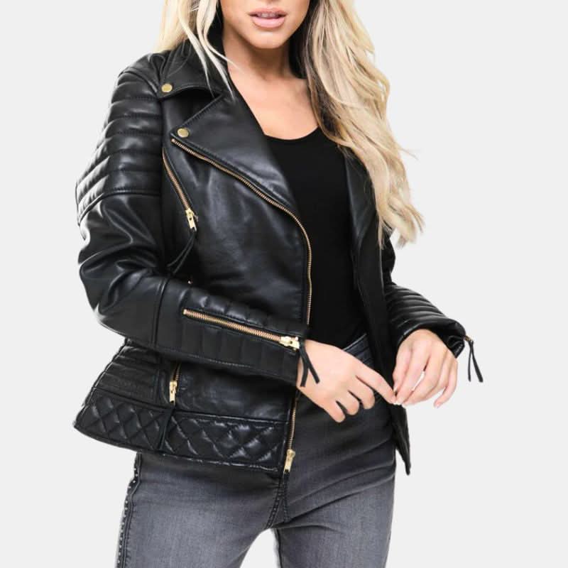 Women’s Black Racer Quilted Leather Jacket