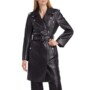 Womens Black Slim Fit Leather Coat With Waist Belt