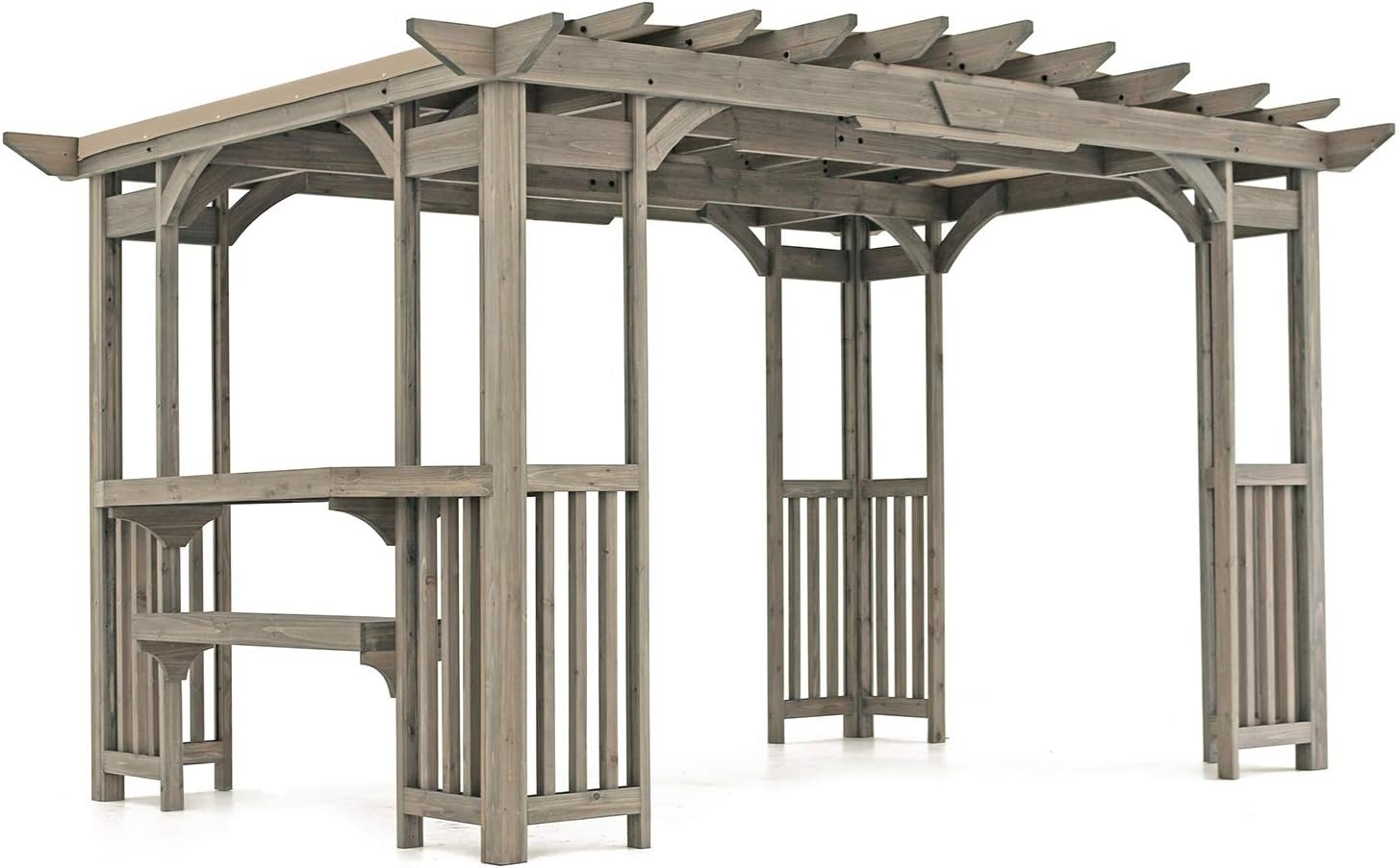 Lumber comes pre-finished in a timber gray stain